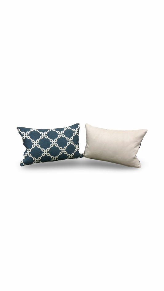 Cobalt Cream Linked Lattice 12X18" Knife Edge Decorative Lumbar Pillow