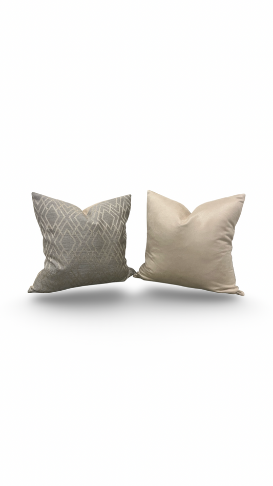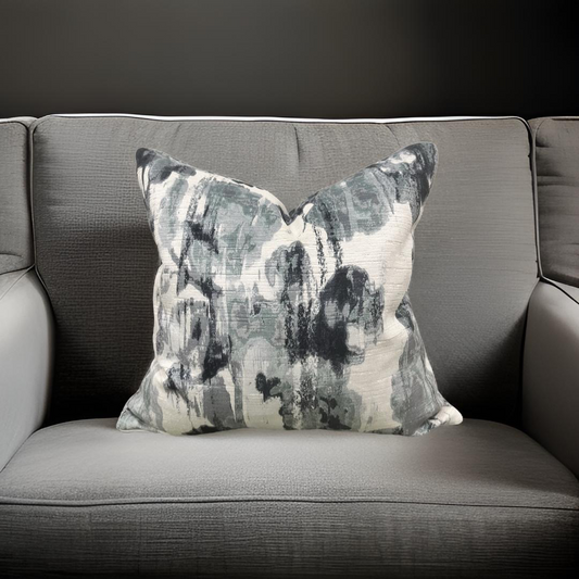 Cream Blue and Grey Velvet Abstract 20x20" Knife Edge Decorative Pillow