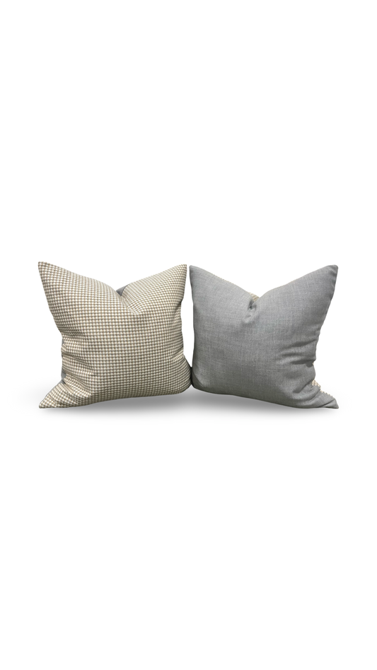 Cream Gold and Grey Small Houndstooth 22x22" Knife Edge Decorative Throw Pillow