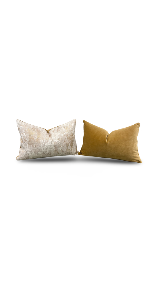 Cream and Gold Paint Stroke 12x18" Knife Edge Decorative Lumbar Pillow