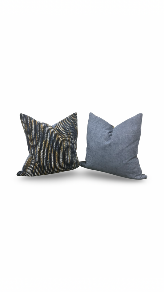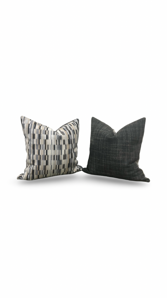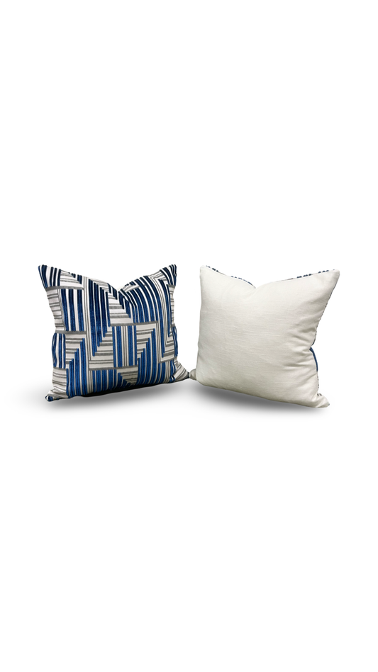 Cuboid Velvet Navy and Grey 16X16" Knife Edge Decorative Pillow