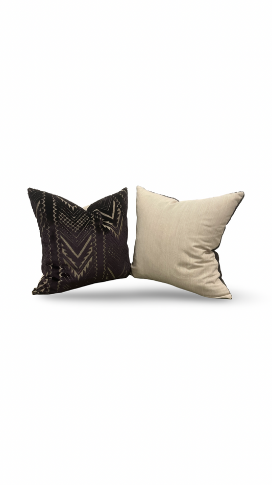 Dark Purple and Tan Raised Cut Velvet 20x20" Knife Edge Decorative Pillow