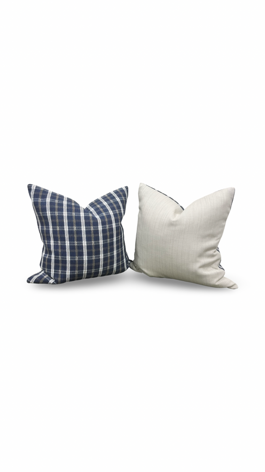 Designer Fabric Samoa Plaid Indigo 22X22" Knife Edge Throw Pillow