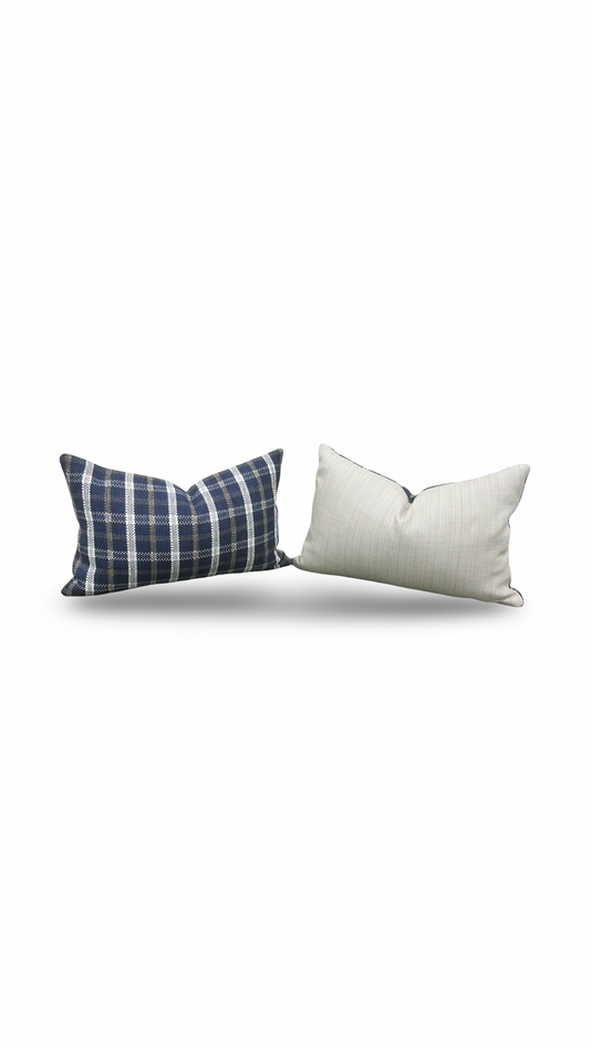 Designer Fabric Samoa Plaid Indigo 12x18" Knife Edge Lumbar Pillow