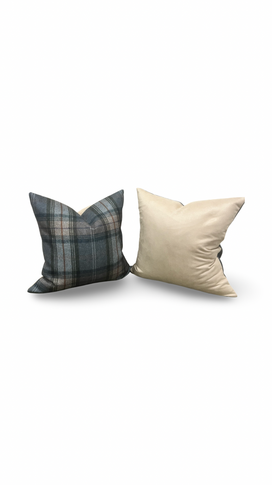 Designer Fabric Worsted Plaid Grey 20x20" Knife Edge Decorative Throw Pillow