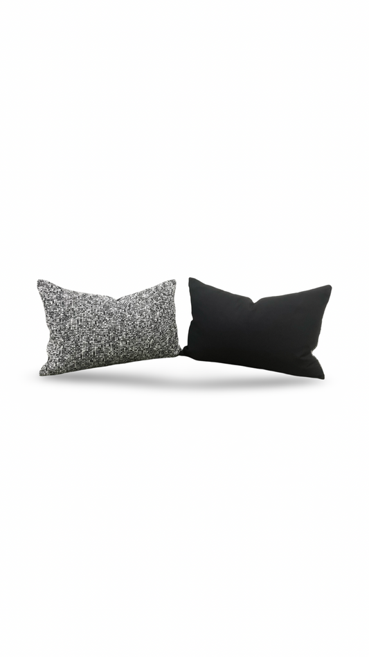 Black and Cream Textured Weave 12X18" Knife Edge Decorative Lumbar Pillow