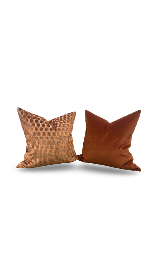 Bakerloo Burnt Orange 22x22" Raised Velvet Knife Edge Decorative Pillow