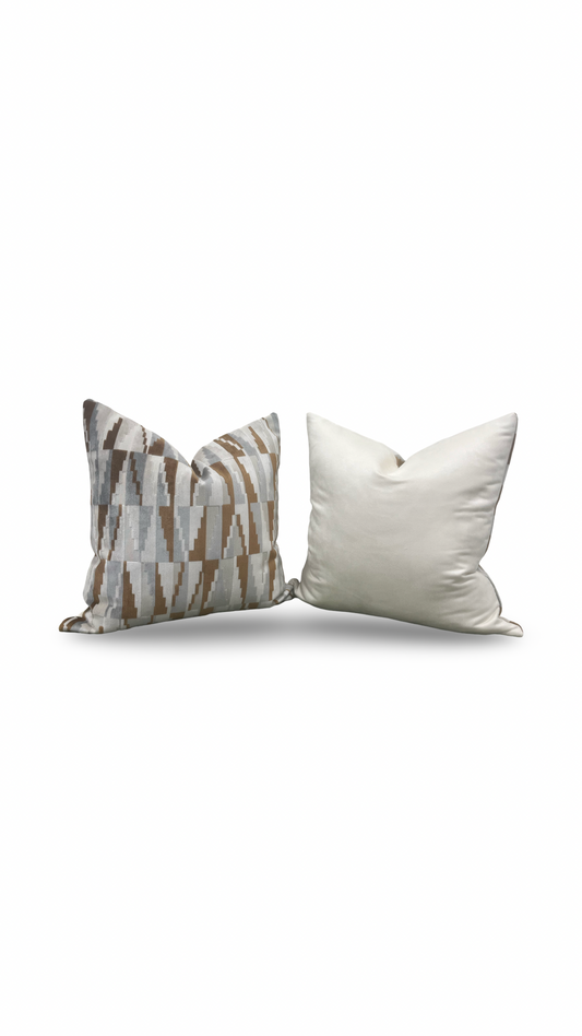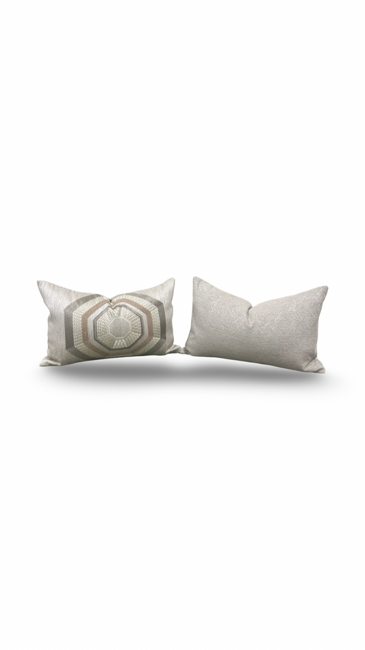 Aqua Cream and Tan Geometric 12X18" Knife Edge Decorative Lumbar Pillow