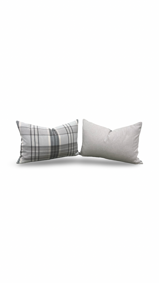 Lumbar Pillow - Gray and Taupe Plaid 12X18" Knife Edge Cover