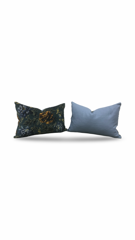 Lumbar Pillow - Floral Embroidered 12x18" Knife Edge Cover
