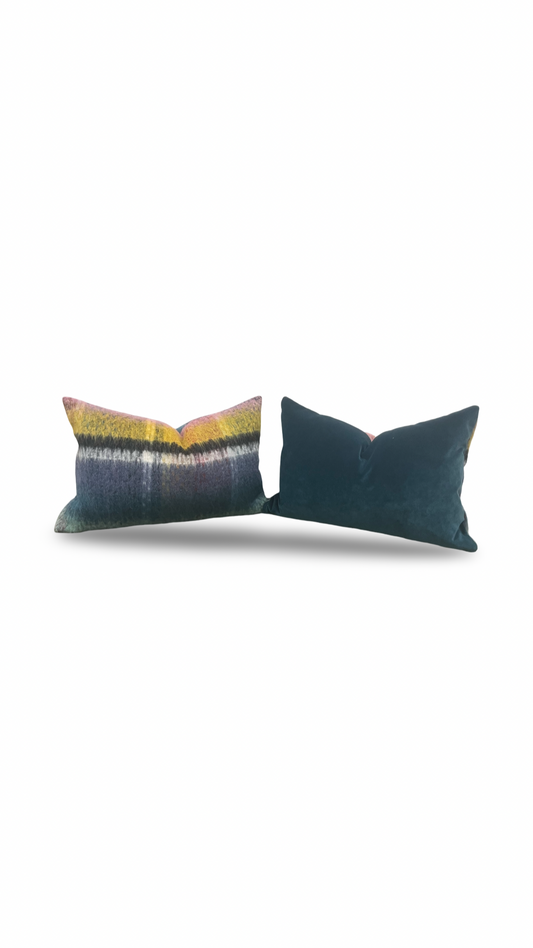 Designer Fabric Chenille Multi Colored 12X18" Knife Edge Decorative Lumbar Pillow