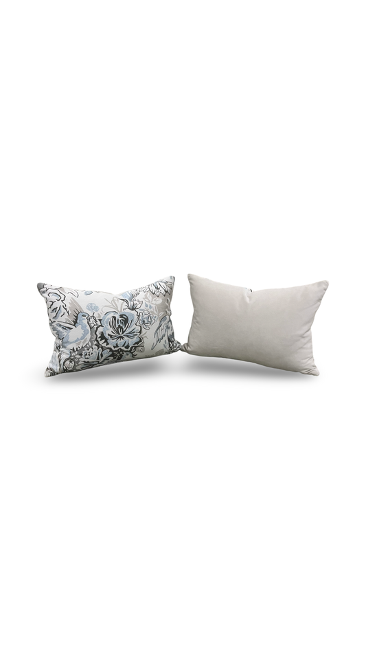 Gray Light Blue Black Silky Floral 12X18" Knife Edge Decorative Lumbar Pillow