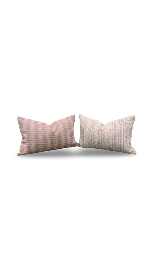 Taupe Grey Check Patterned 12X18" Knife Edge Decorative Lumbar Pillow