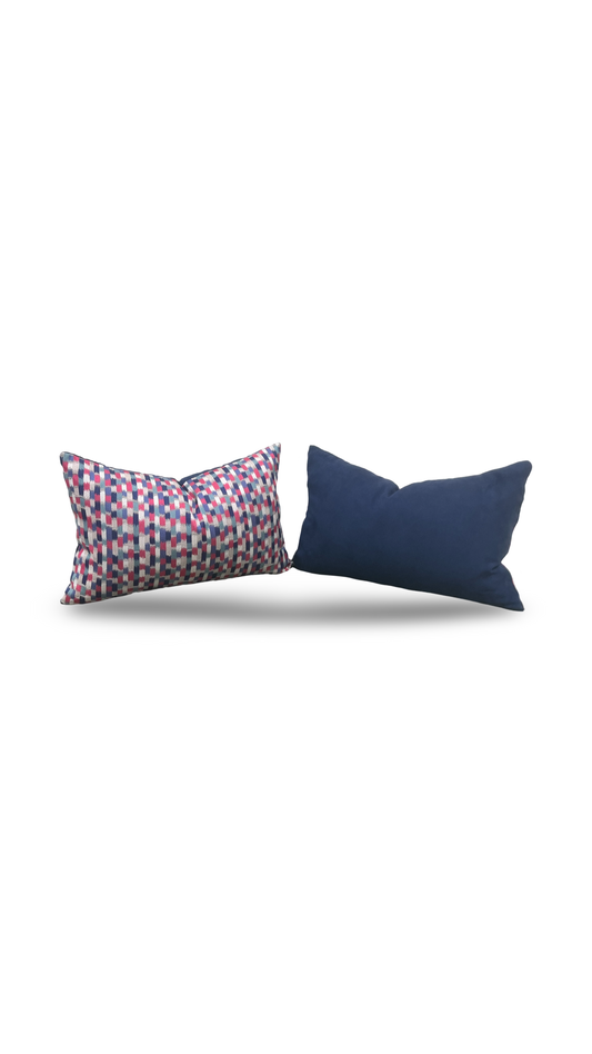 Pink Blue and Silver 12X18" Knife Edge Decorative Lumbar Pillow