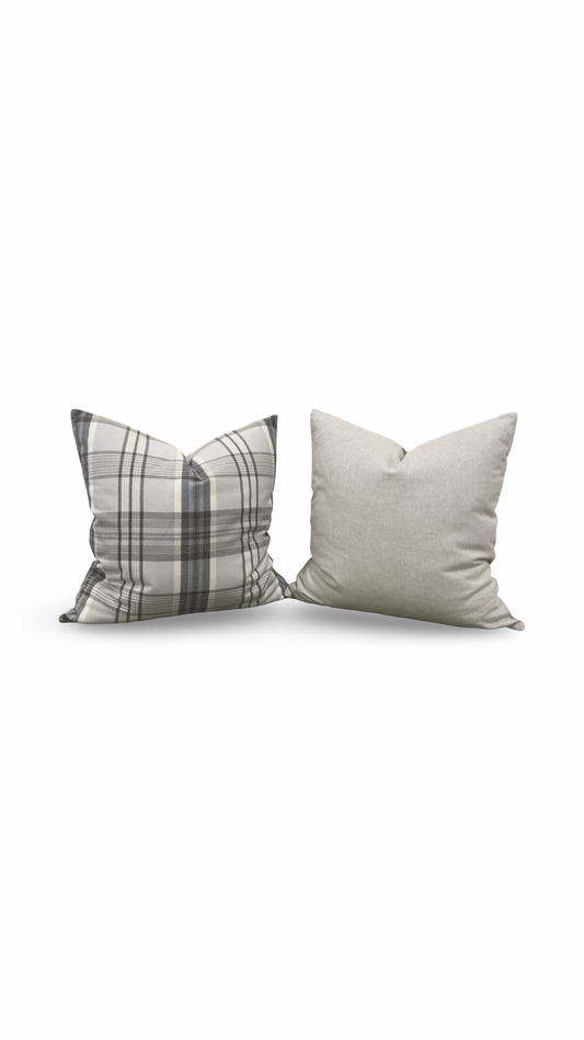 Decorative Pillow - Gray and Taupe Plaid 20x20" Knife Edge Cover