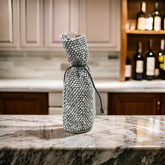 Grey, Gold, and Black Velvet Wine Bottle Bag