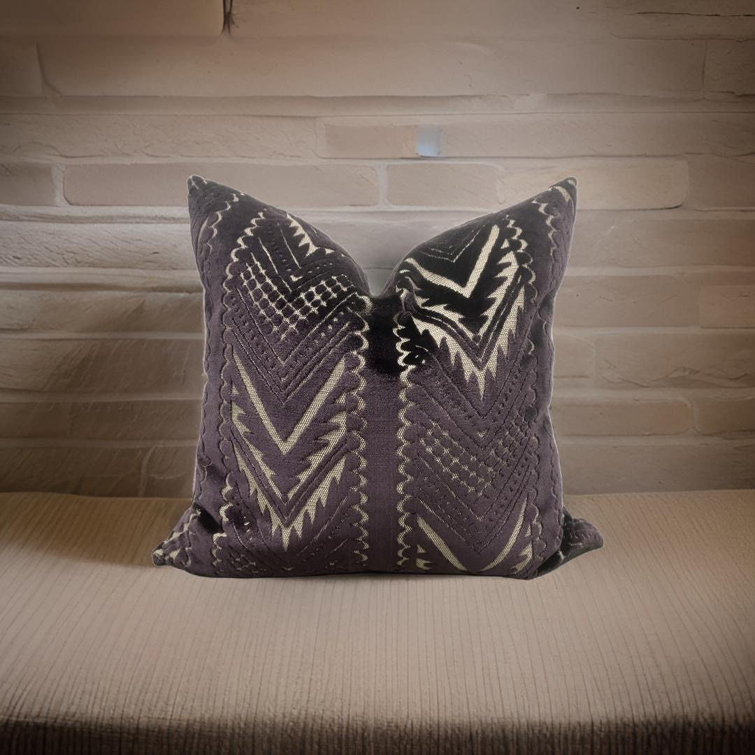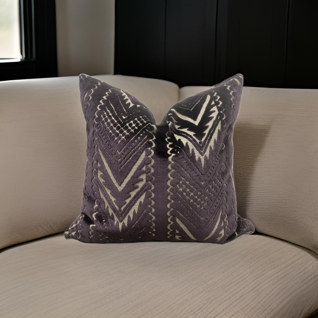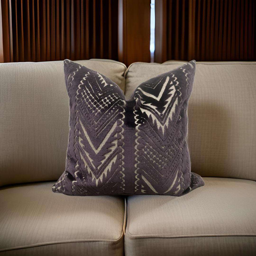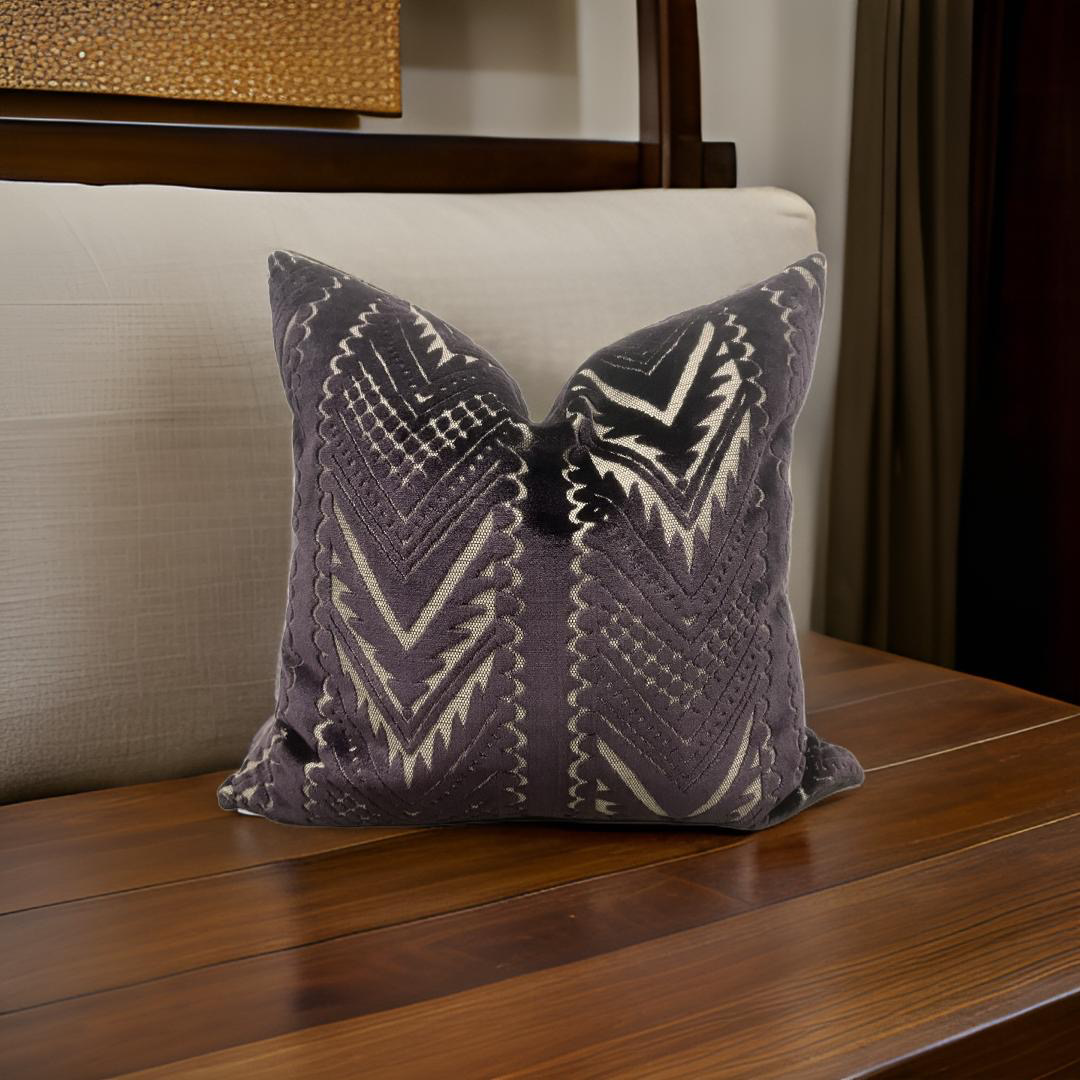 Dark Purple and Tan Raised Cut Velvet 20x20" Knife Edge Decorative Pillow