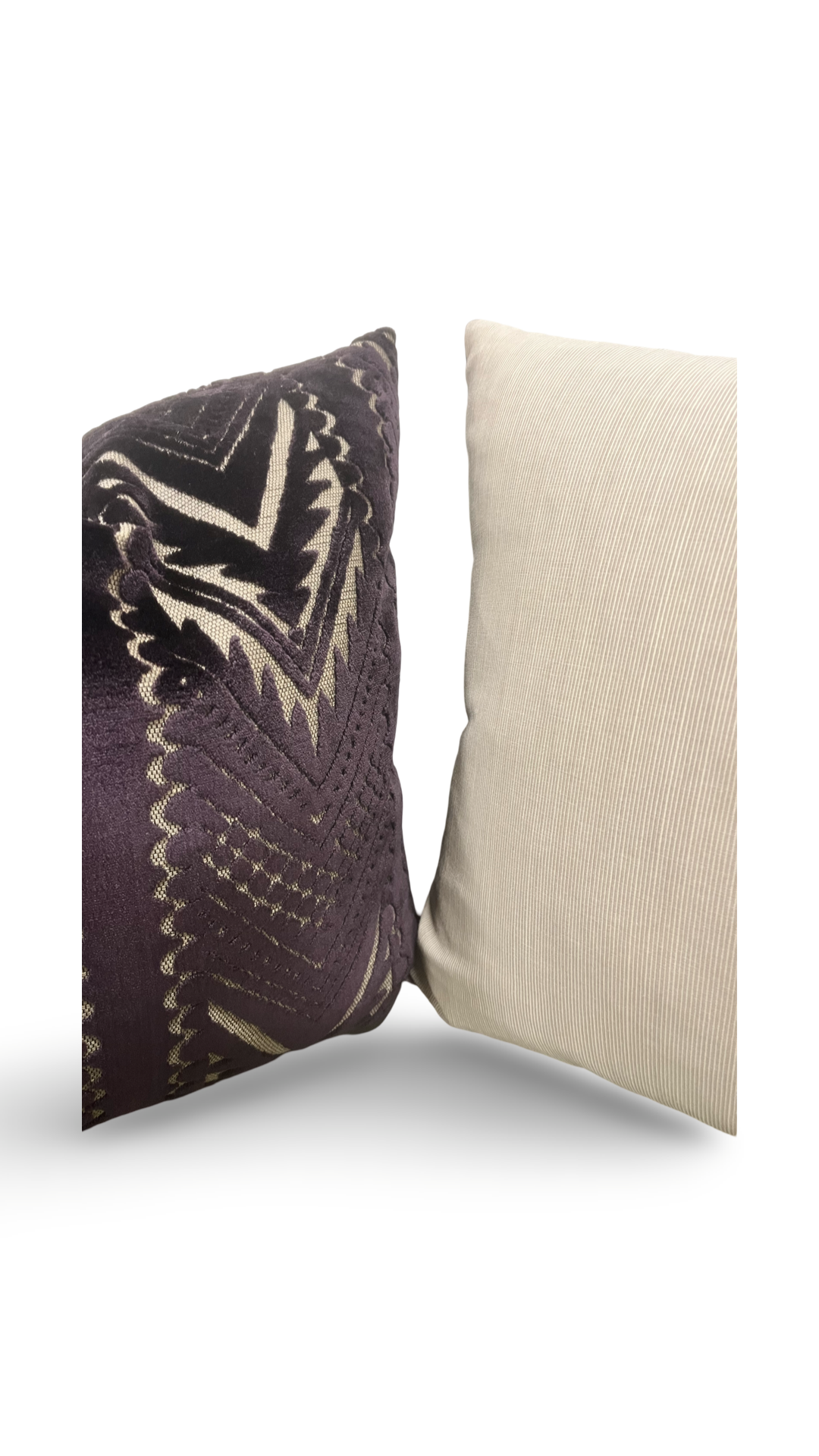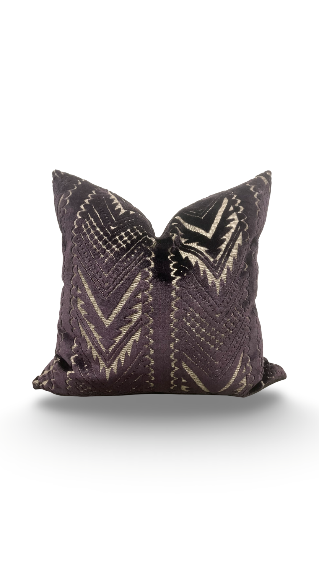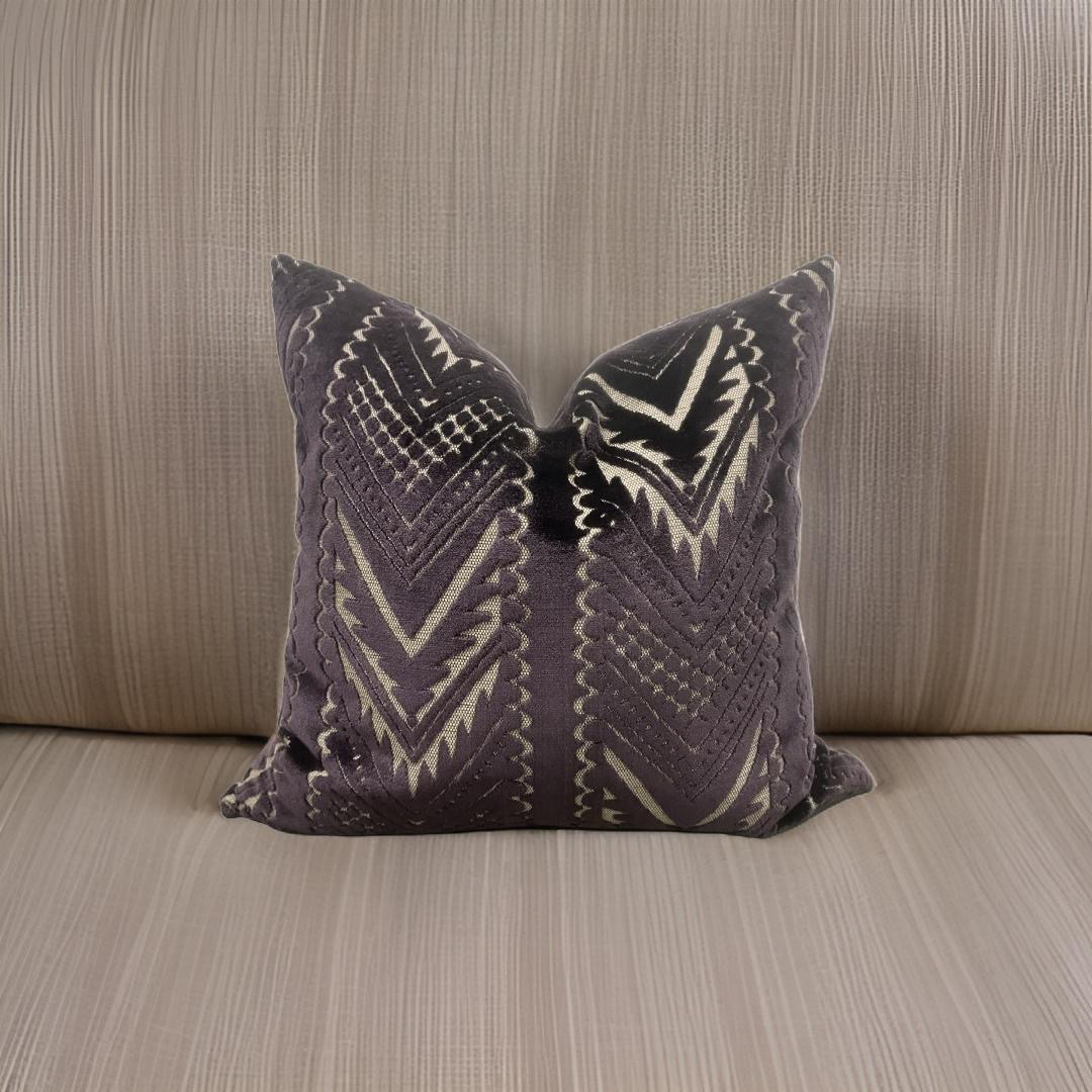 Dark Purple and Tan Raised Cut Velvet 20x20" Knife Edge Decorative Pillow
