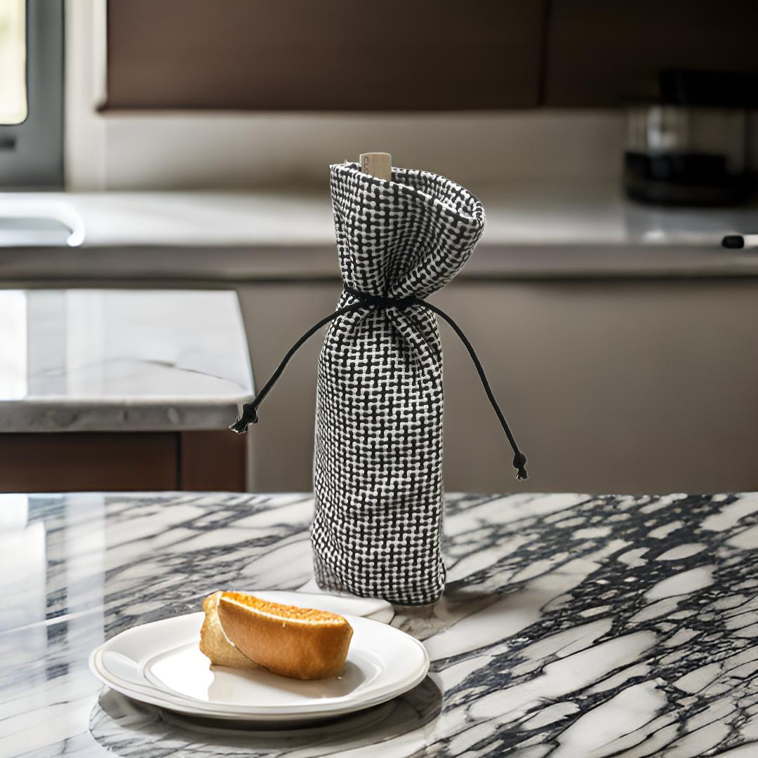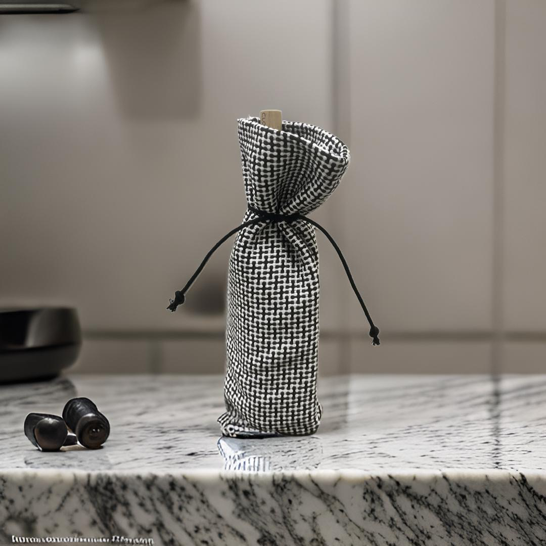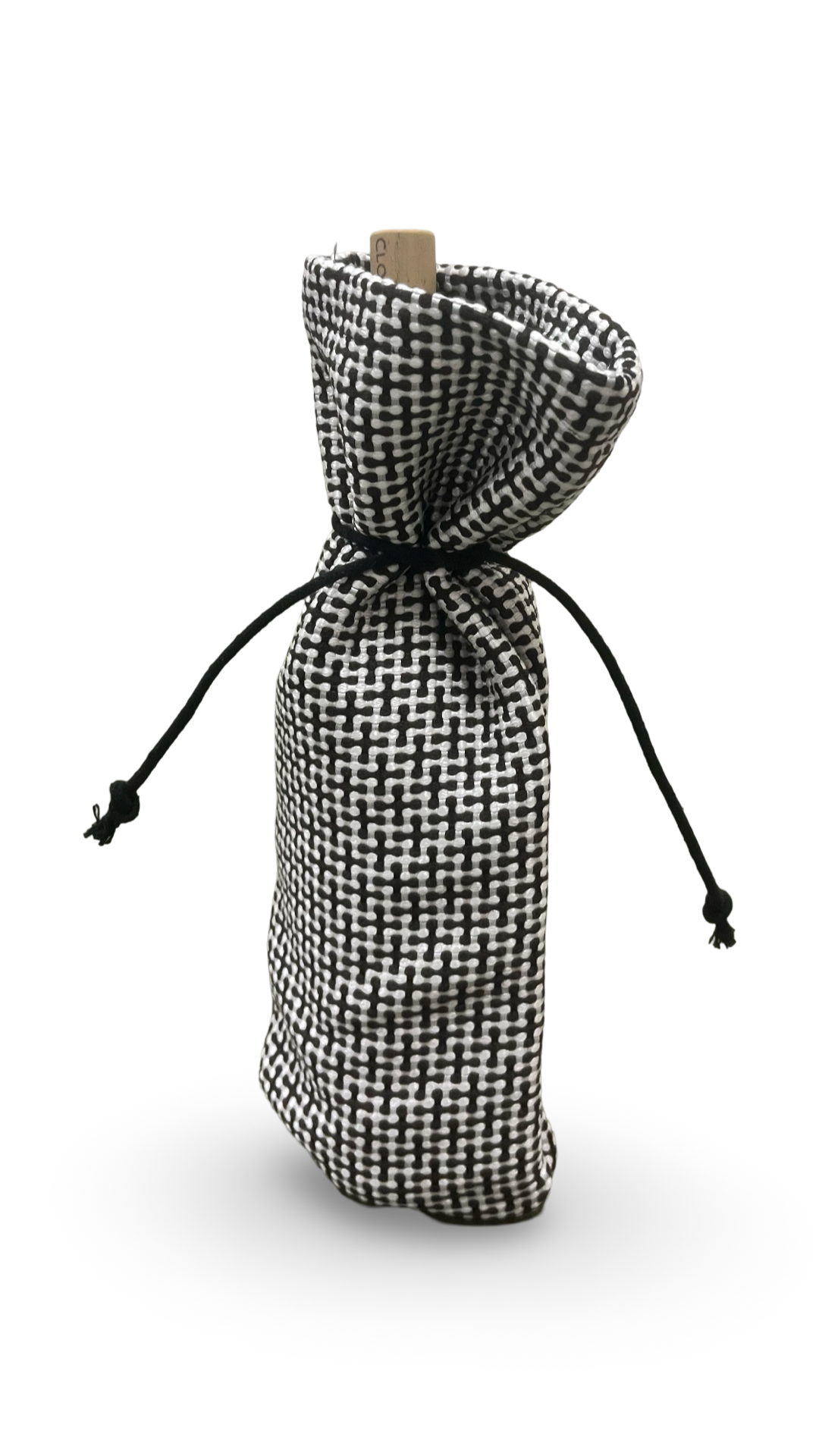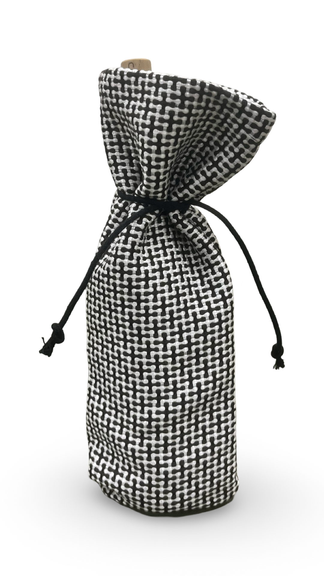 Our gift bags are great for any occasion. They are, especially, great for gifting a bottle of wine. They could also be used for many other small gifts too (see dimensions). These bags can be gifted and re-gifted, time and time again. Our fabric gift bags are handmade in Kentwood, Michigan. They are made with a durable Charcoal/black velvet fabric and have a 3 mm black tie cord which is approximately 3" down from the top of the bag, which ties perfectly around the neck of a wine bottle. Each bag measures 14 3/4" (h) x 6" (w).