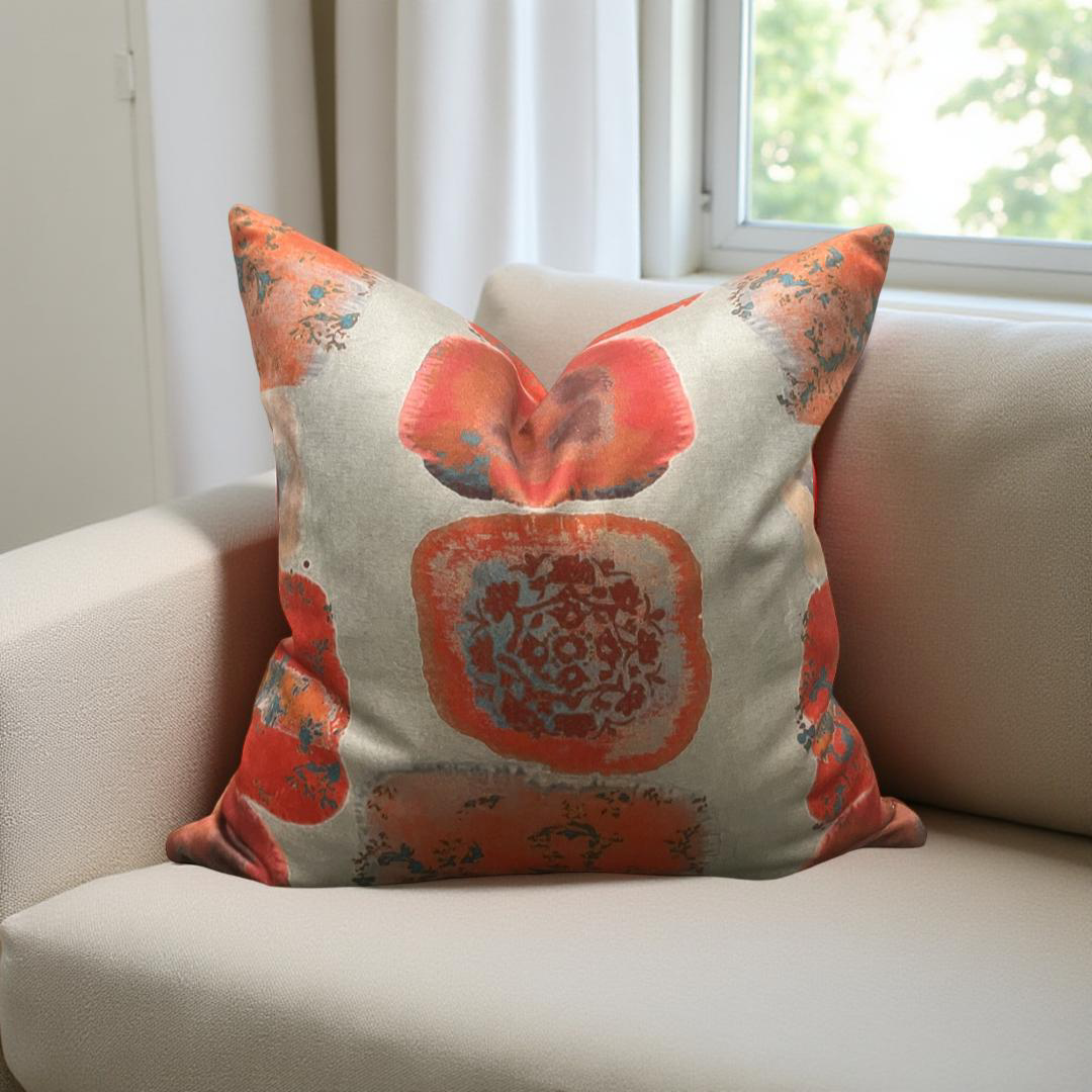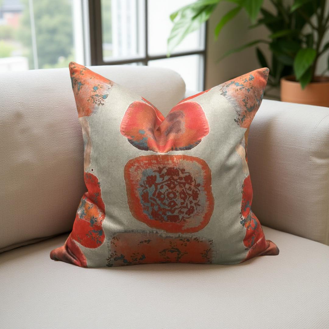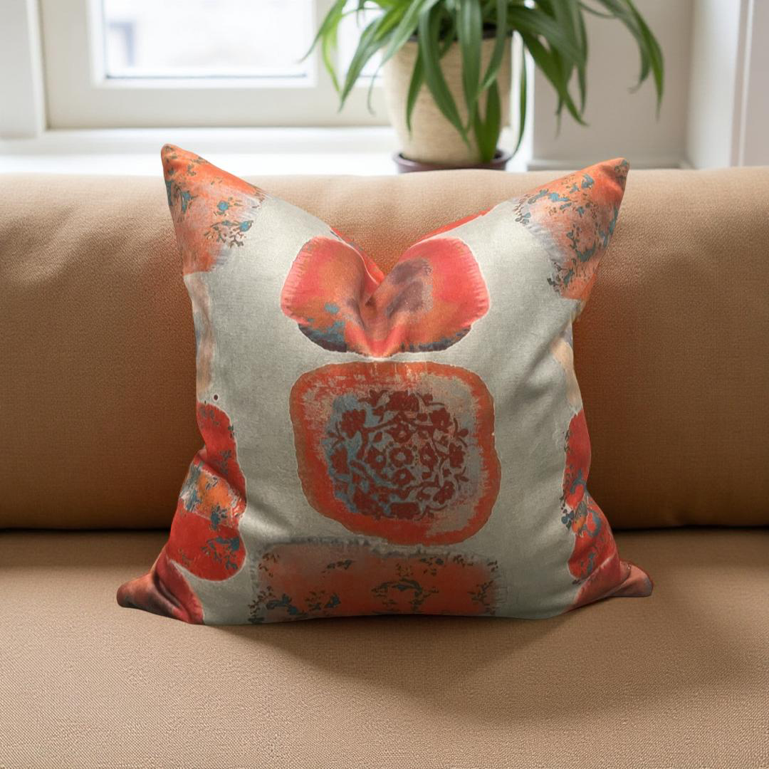 Designer Fabric Buckwheat Chinese Red 20x20" Knife Edge Decorative Throw Pillow