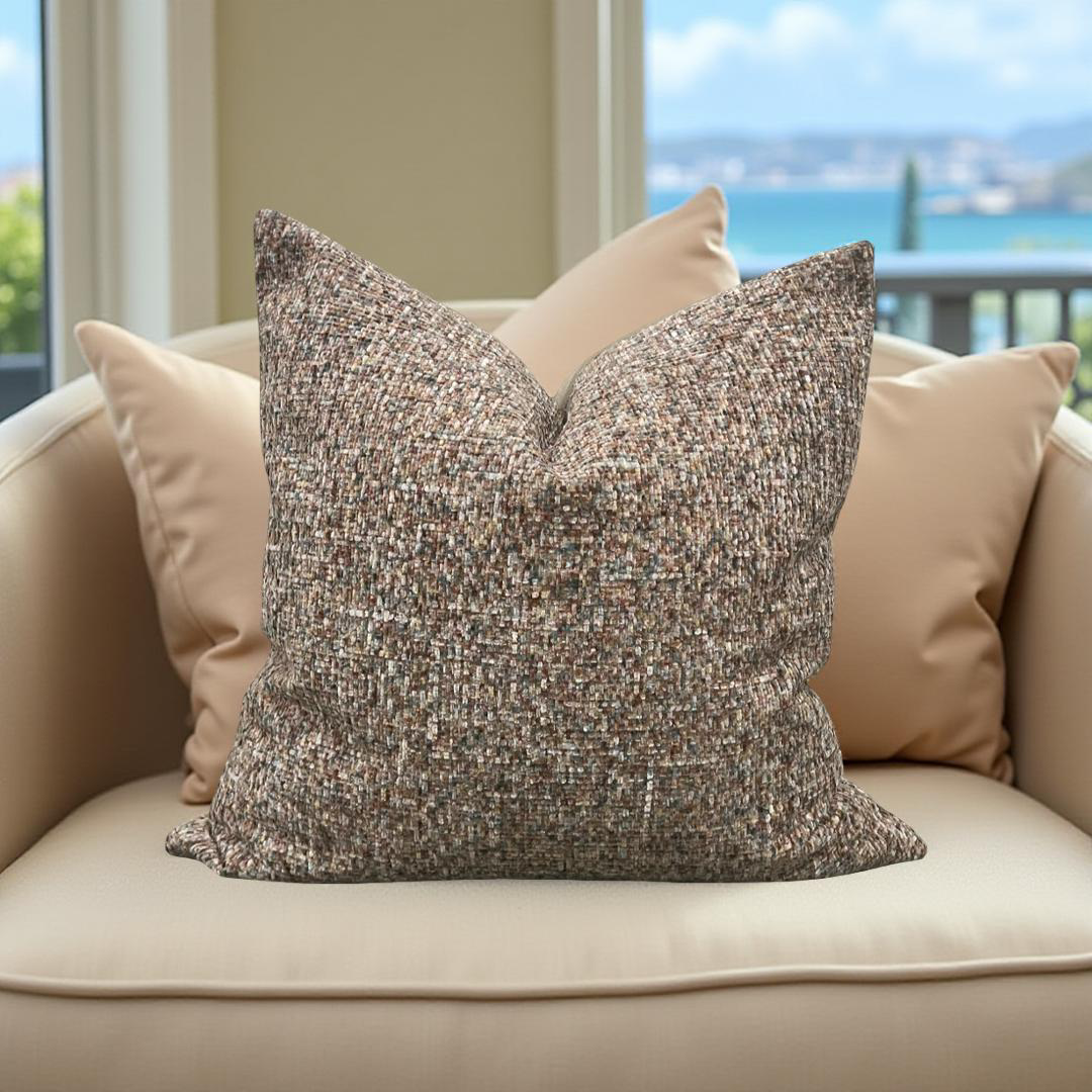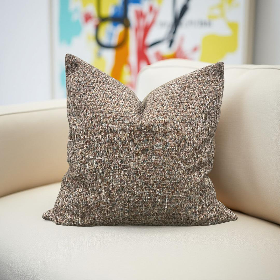 Designer Fabric Chenille Multi Colored 22x22" Knife Edge Decorative Throw Pillow