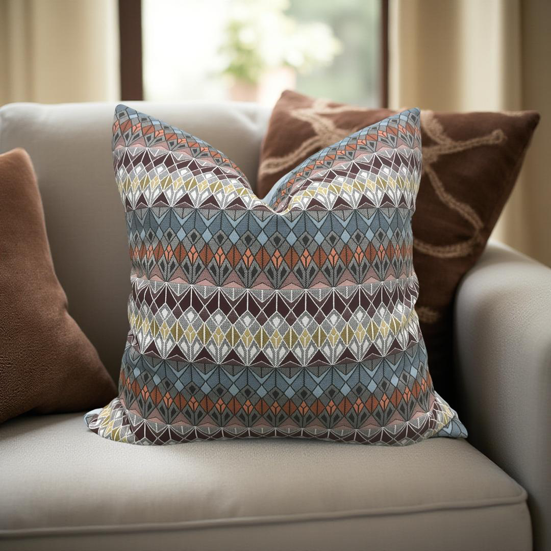 Elevate your interior design with this luxurious 20x20 inch knife edge pillow cover, expertly crafted from the exquisite Brentano - 5831-06 Vitreum Mookaite Jasper fabric. Sourced from the prestigious Brentano design house, this cover features a stunning and sophisticated pattern with an iridescent sheen that catches the light beautifully, adding a modern and opulent touch to any room.