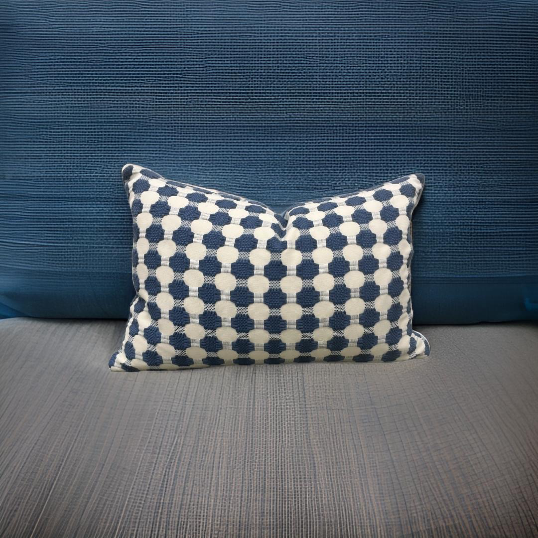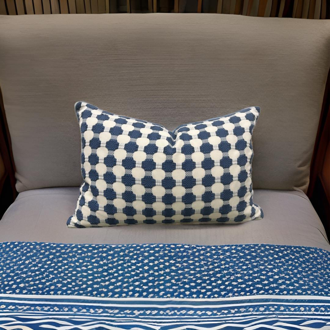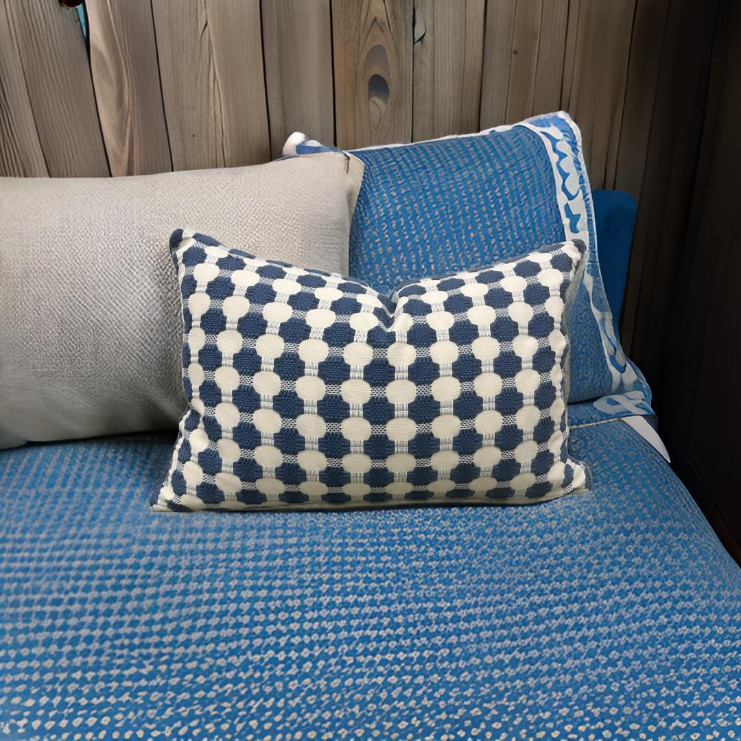 Cream with Blue Polka Dots 12X18" Knife Edge Decorative Lumbar Pillow