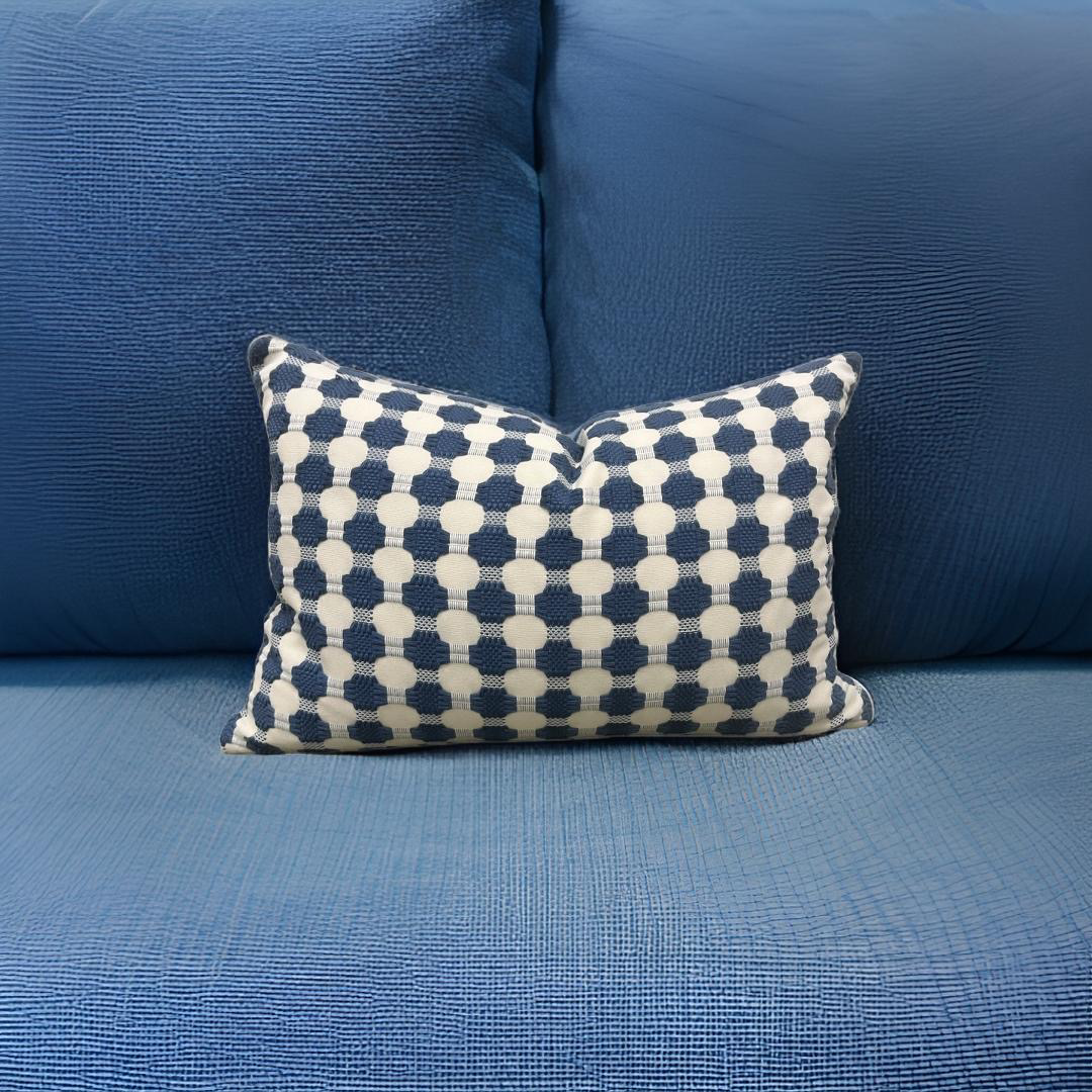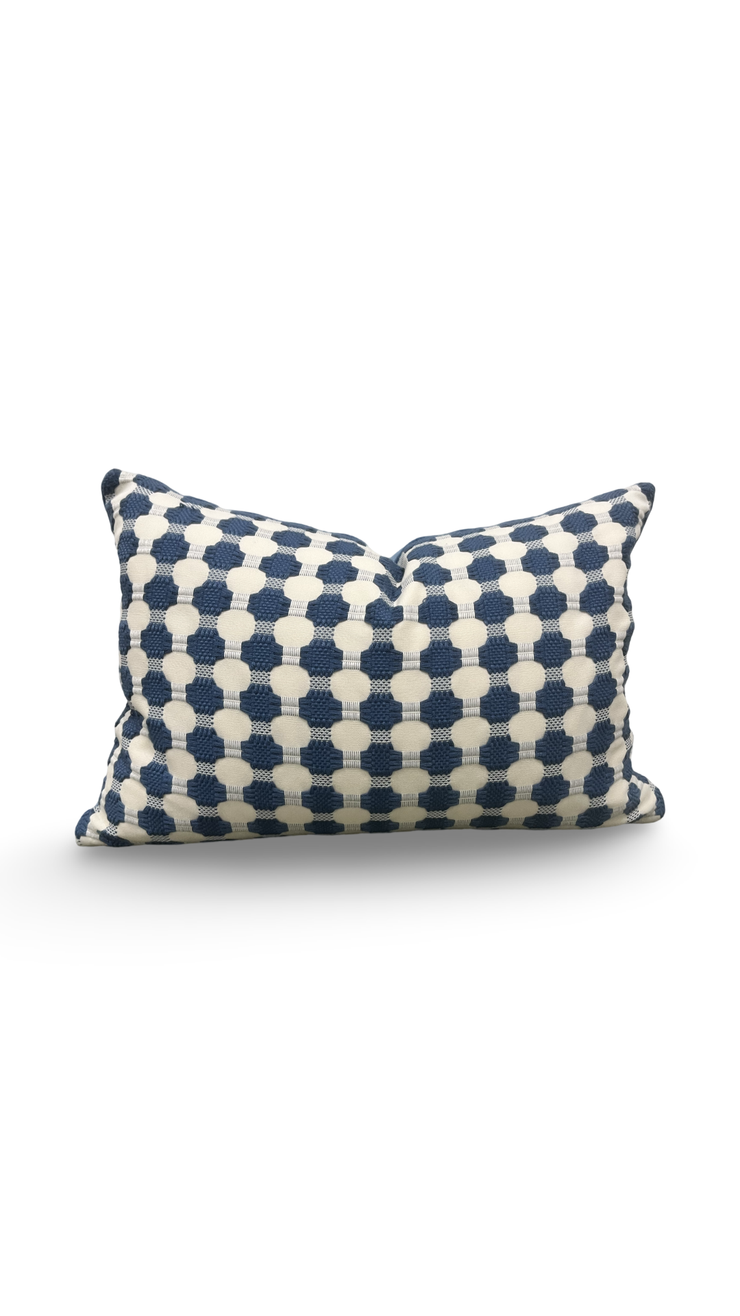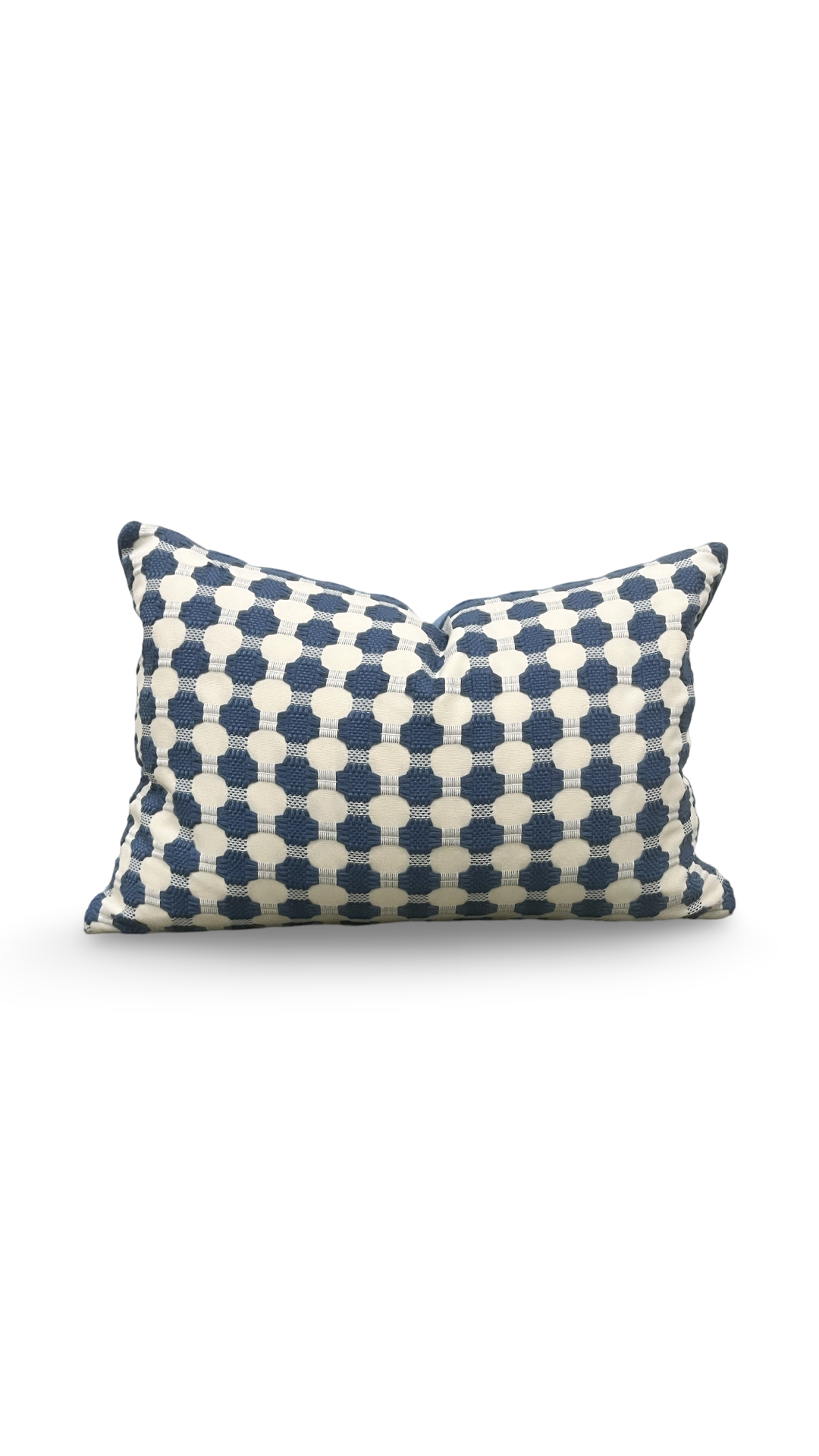 Cream with Blue Polka Dots 12X18" Knife Edge Decorative Lumbar Pillow