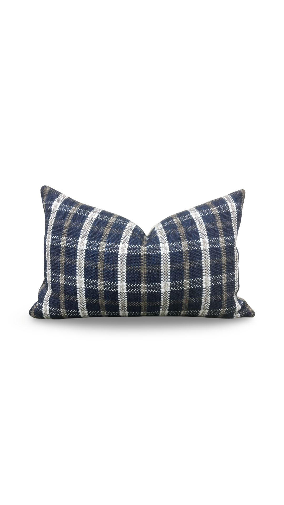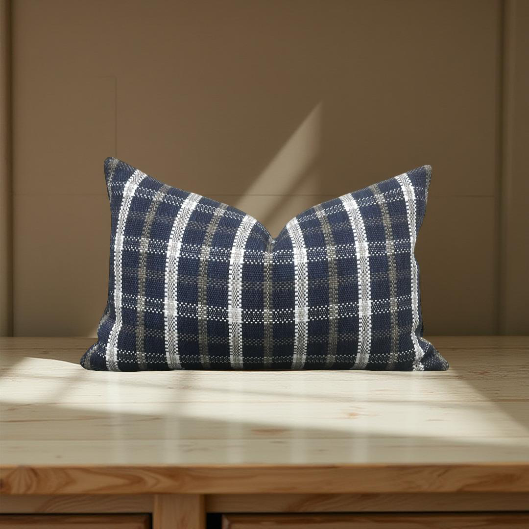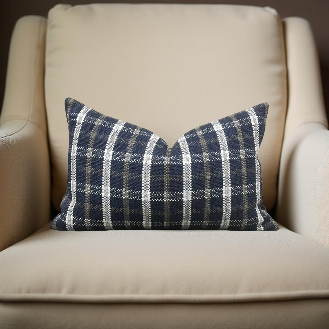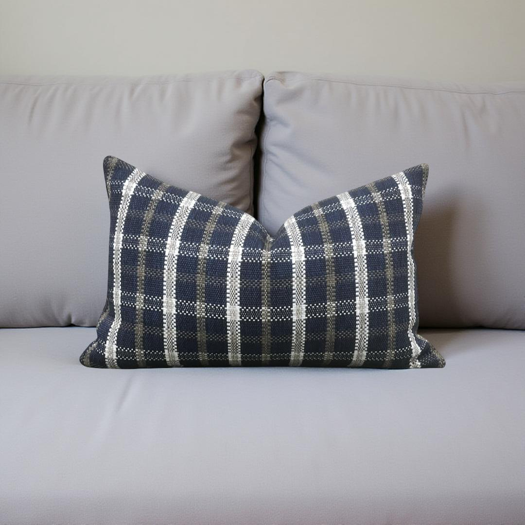 Designer Fabric Samoa Plaid Indigo 12x18" Knife Edge Lumbar Pillow