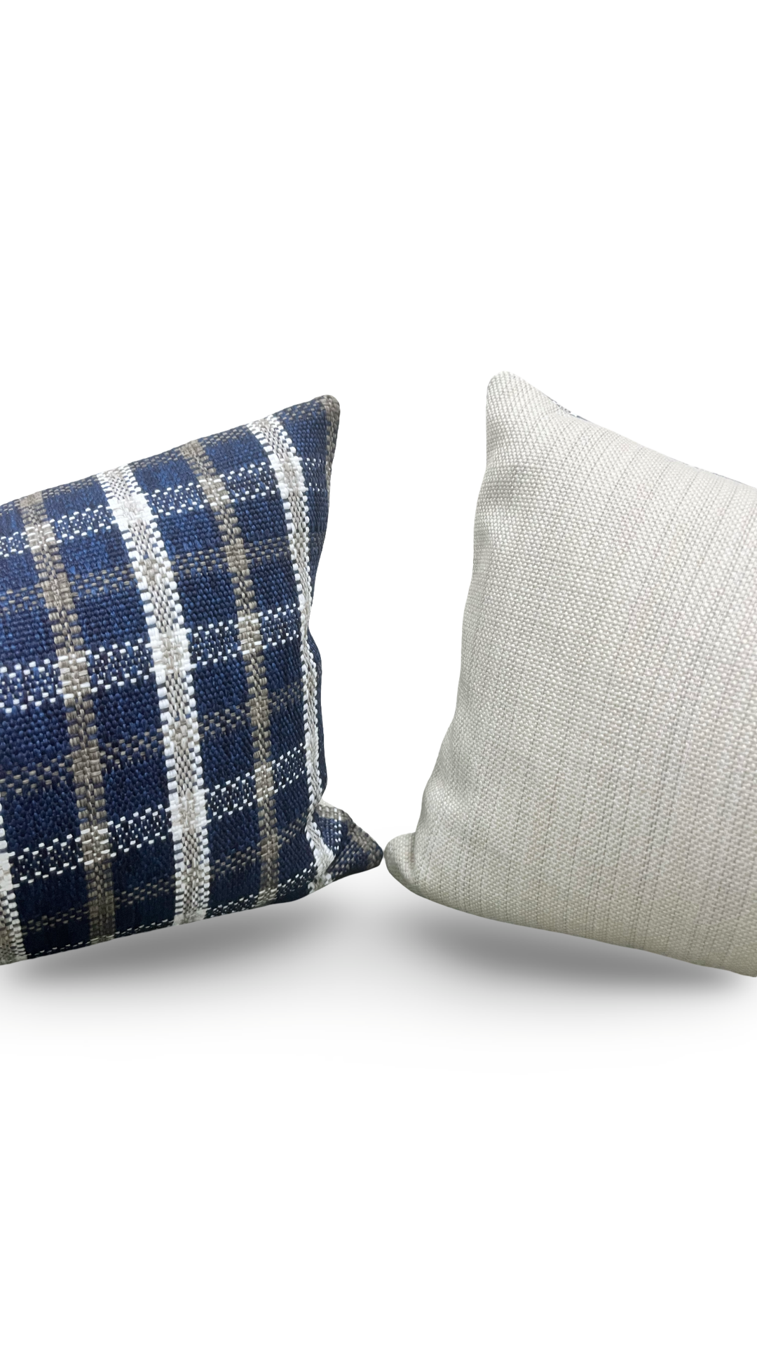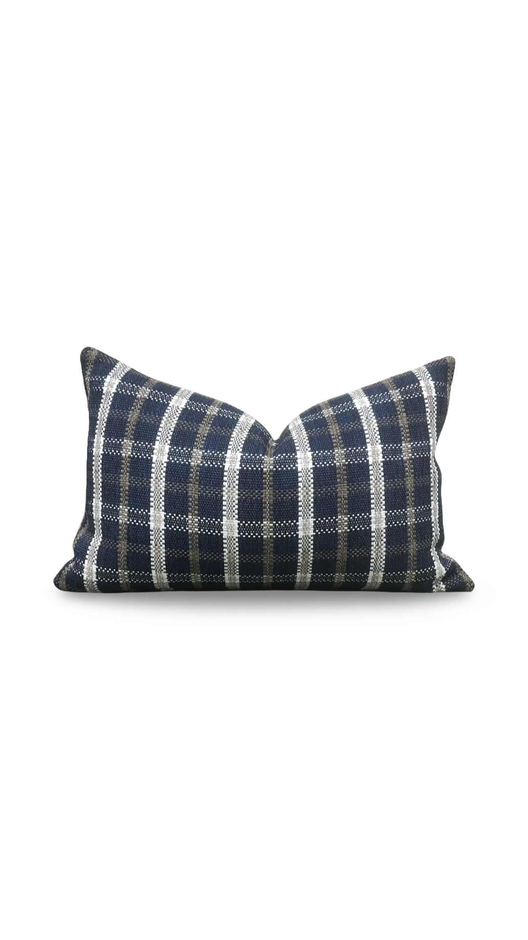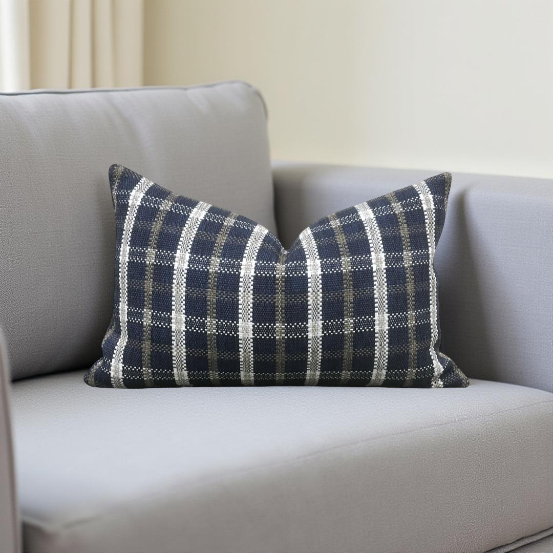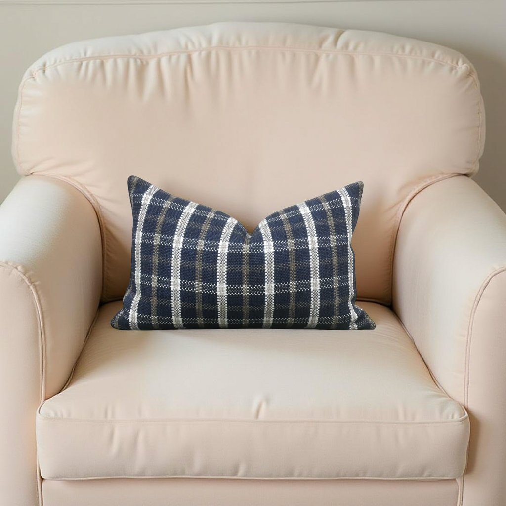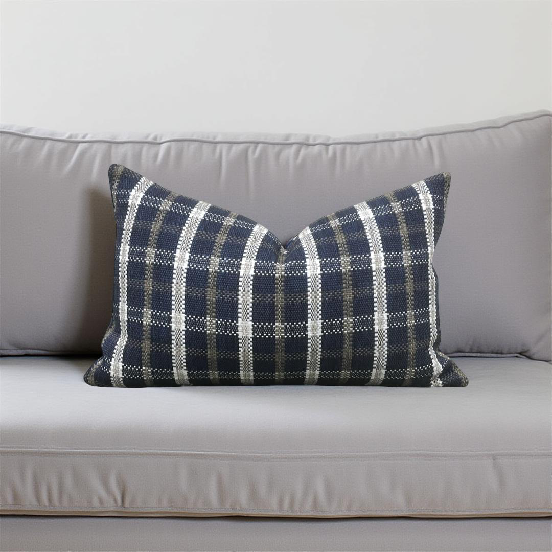 Designer Fabric Samoa Plaid Indigo 12x18" Knife Edge Lumbar Pillow