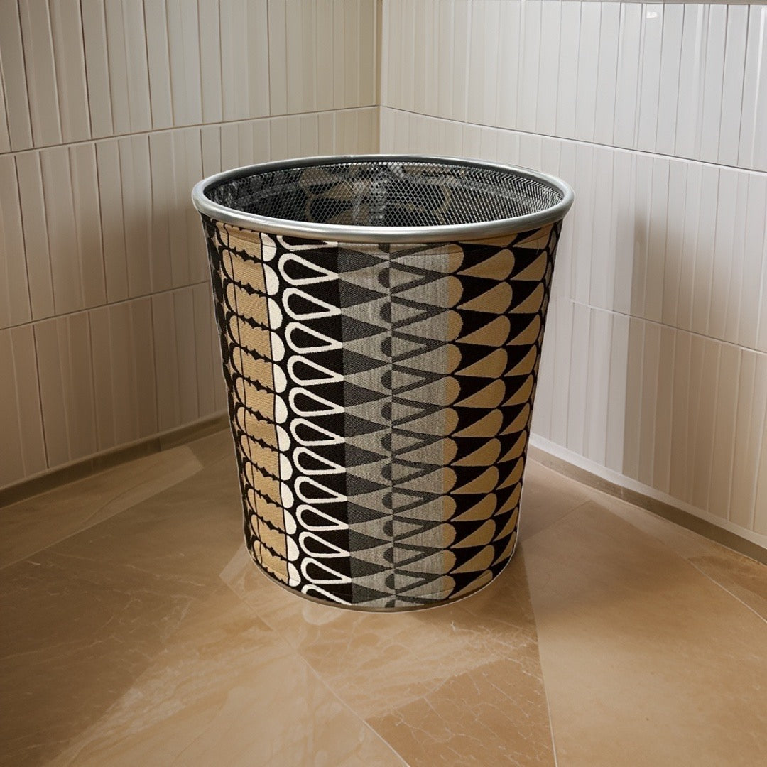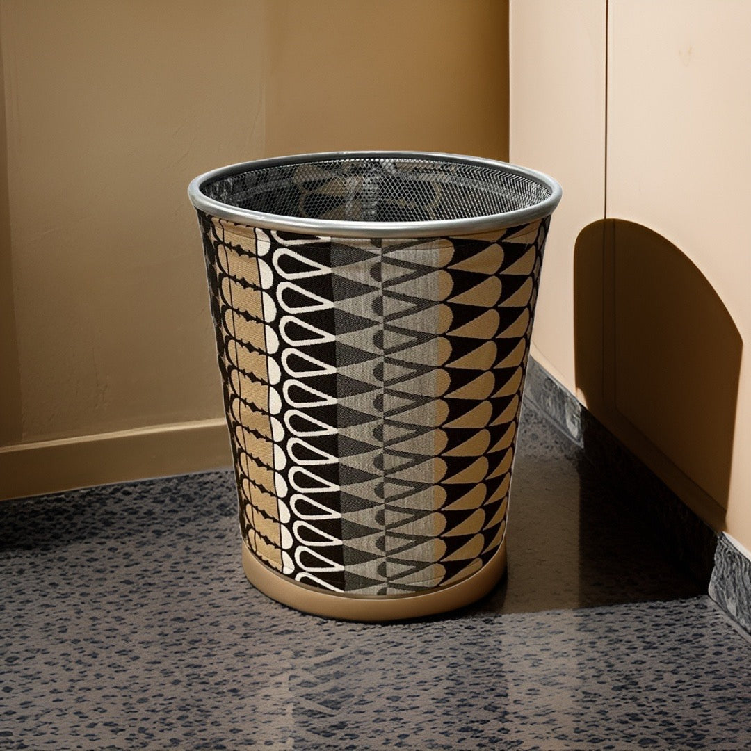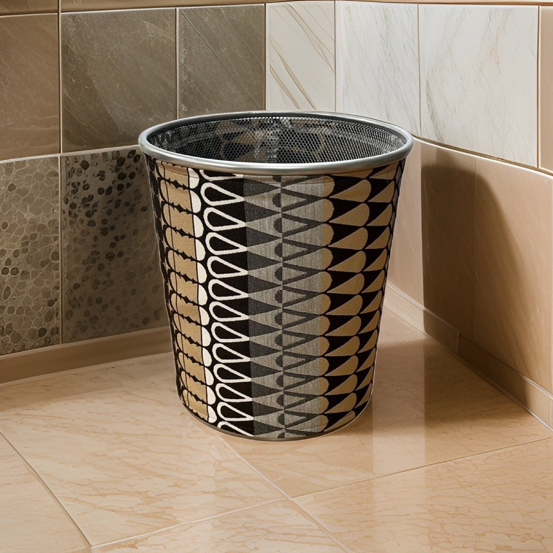 Black, Brown, and Grey ZigZag Patterned Decorative Waste Basket Bin