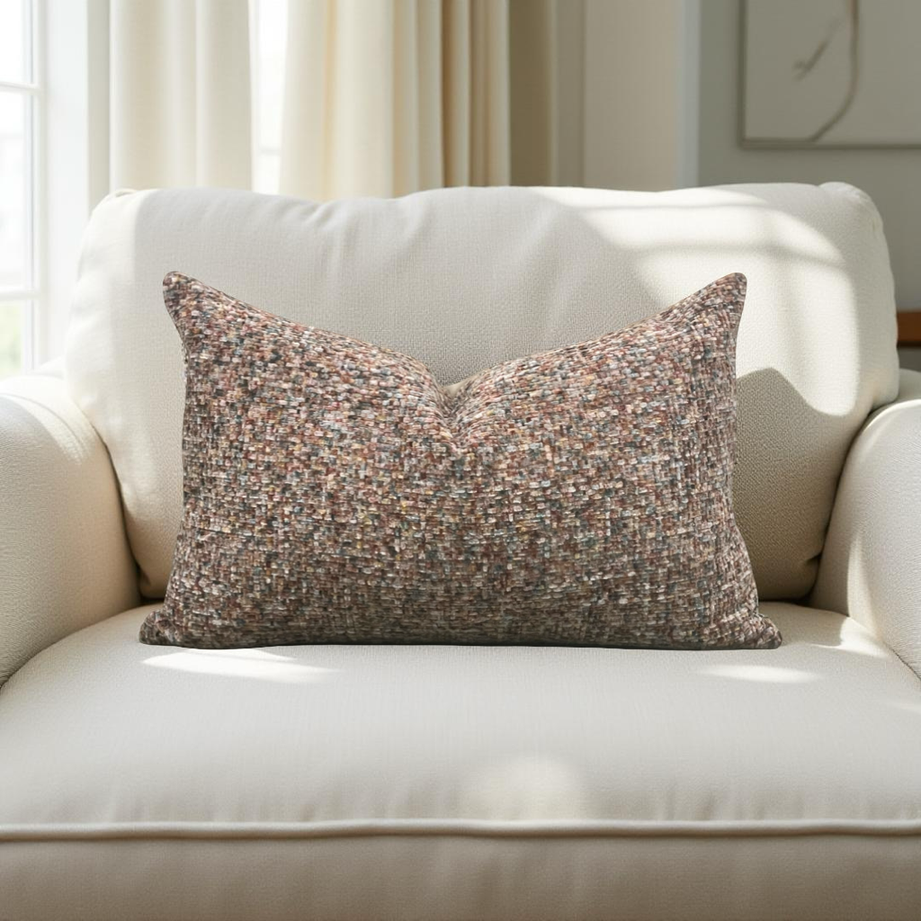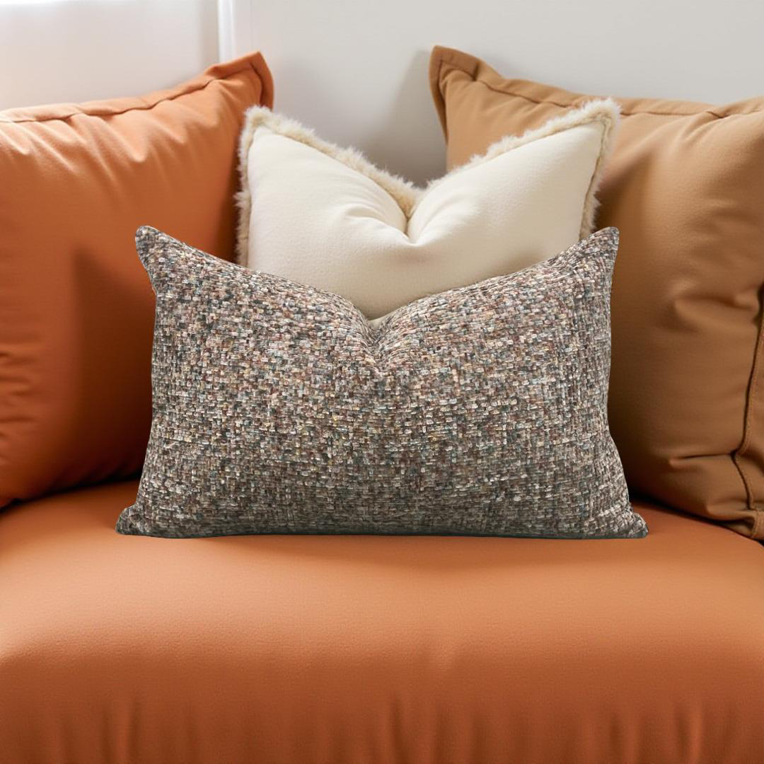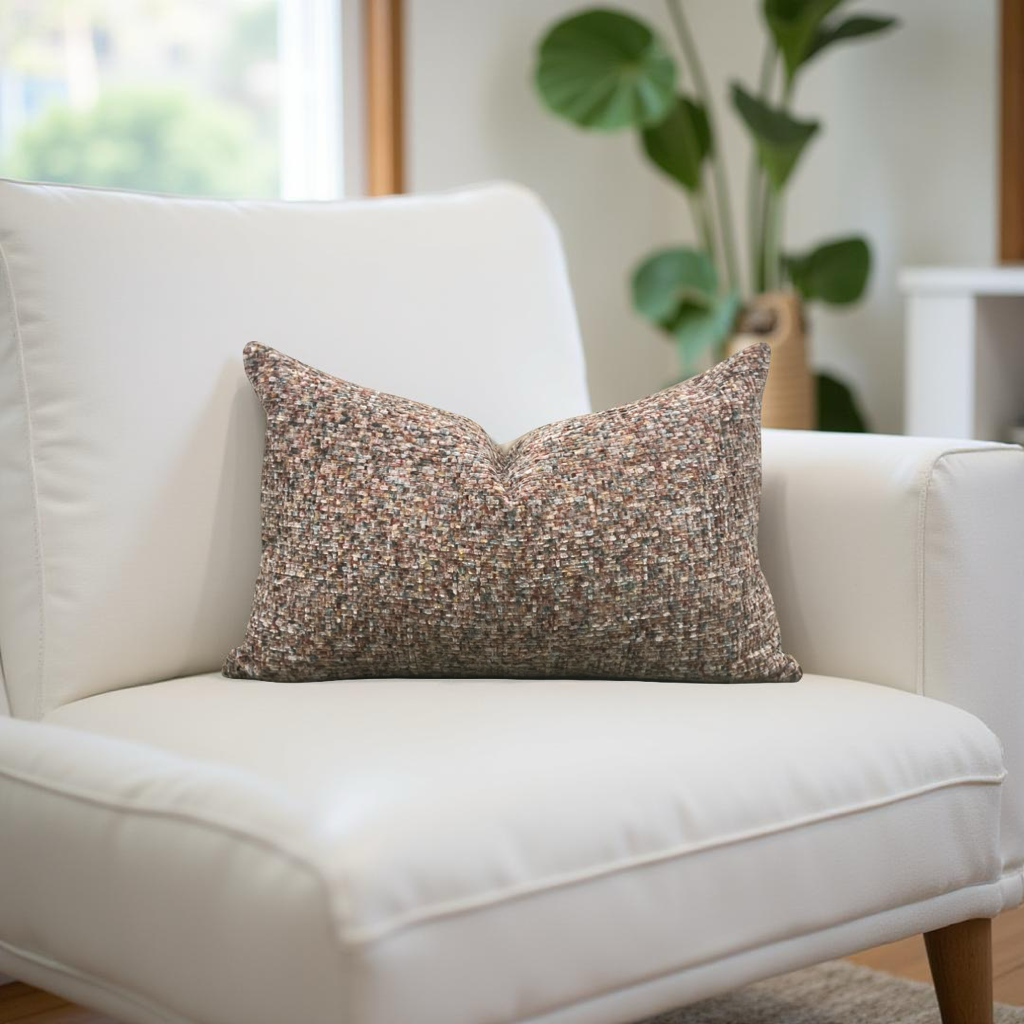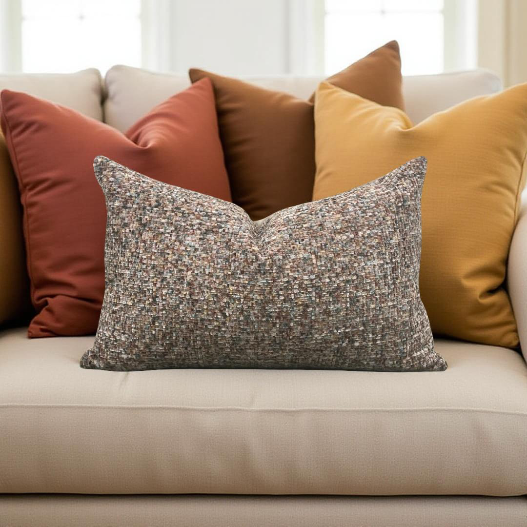 Designer Fabric Chenille Multi Colored 12X18" Knife Edge Decorative Lumbar Pillow