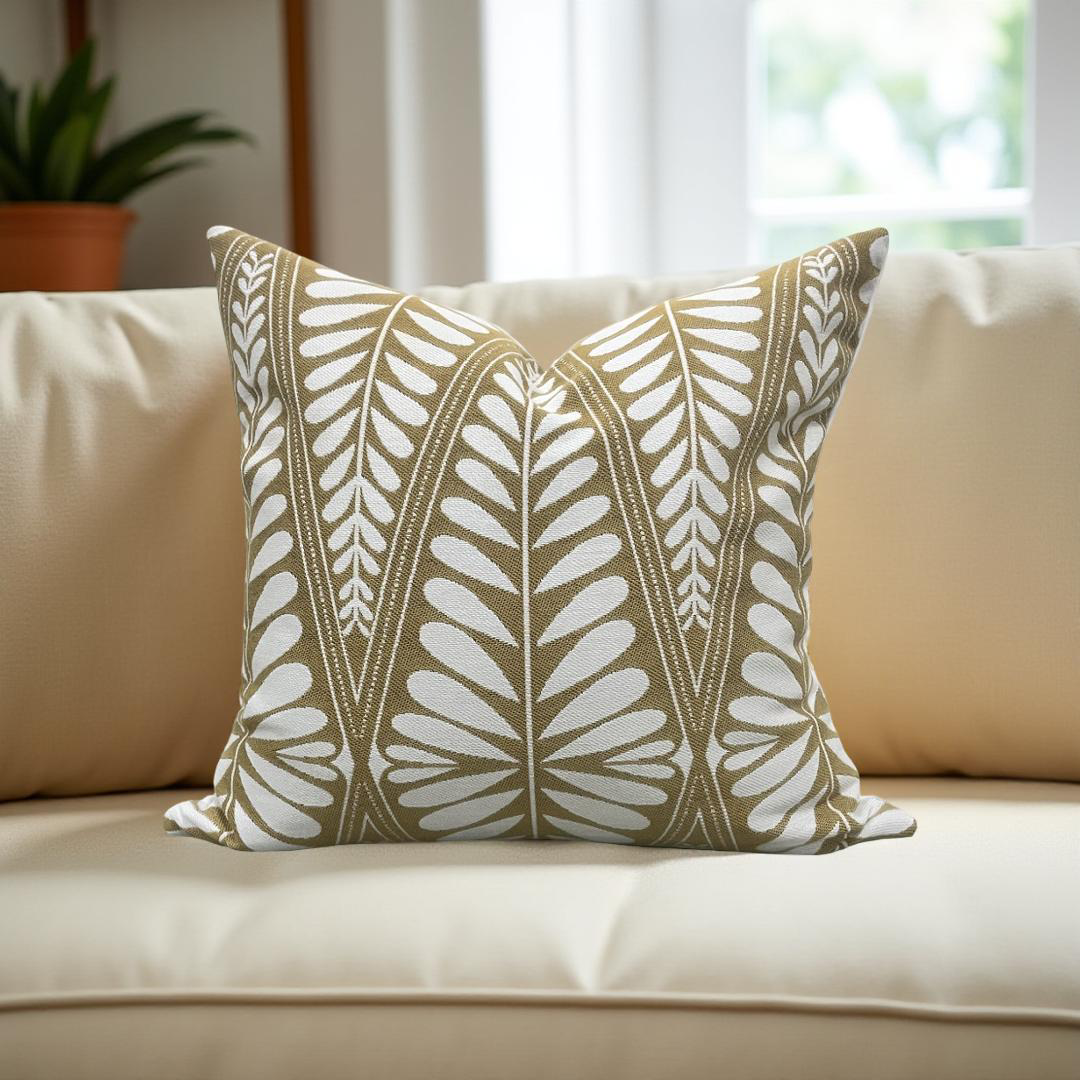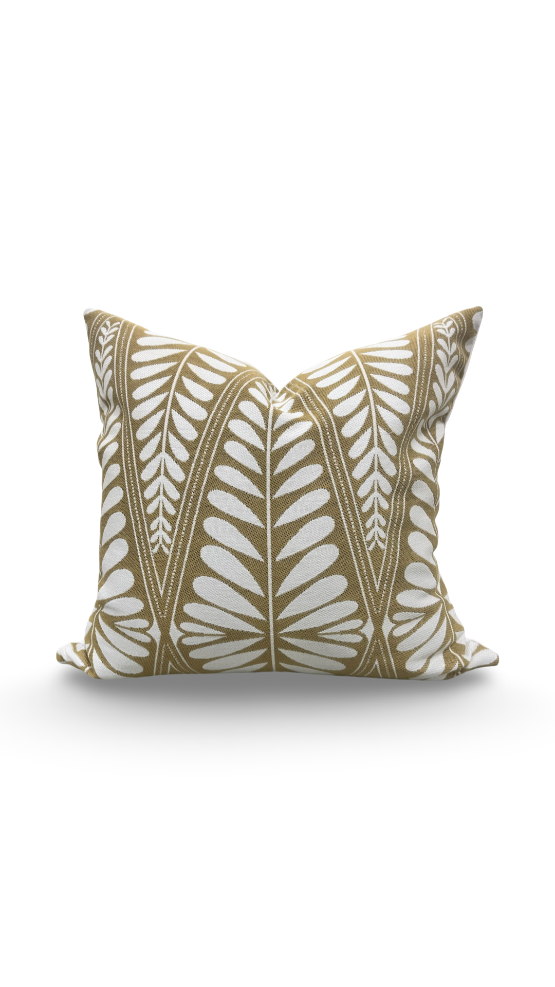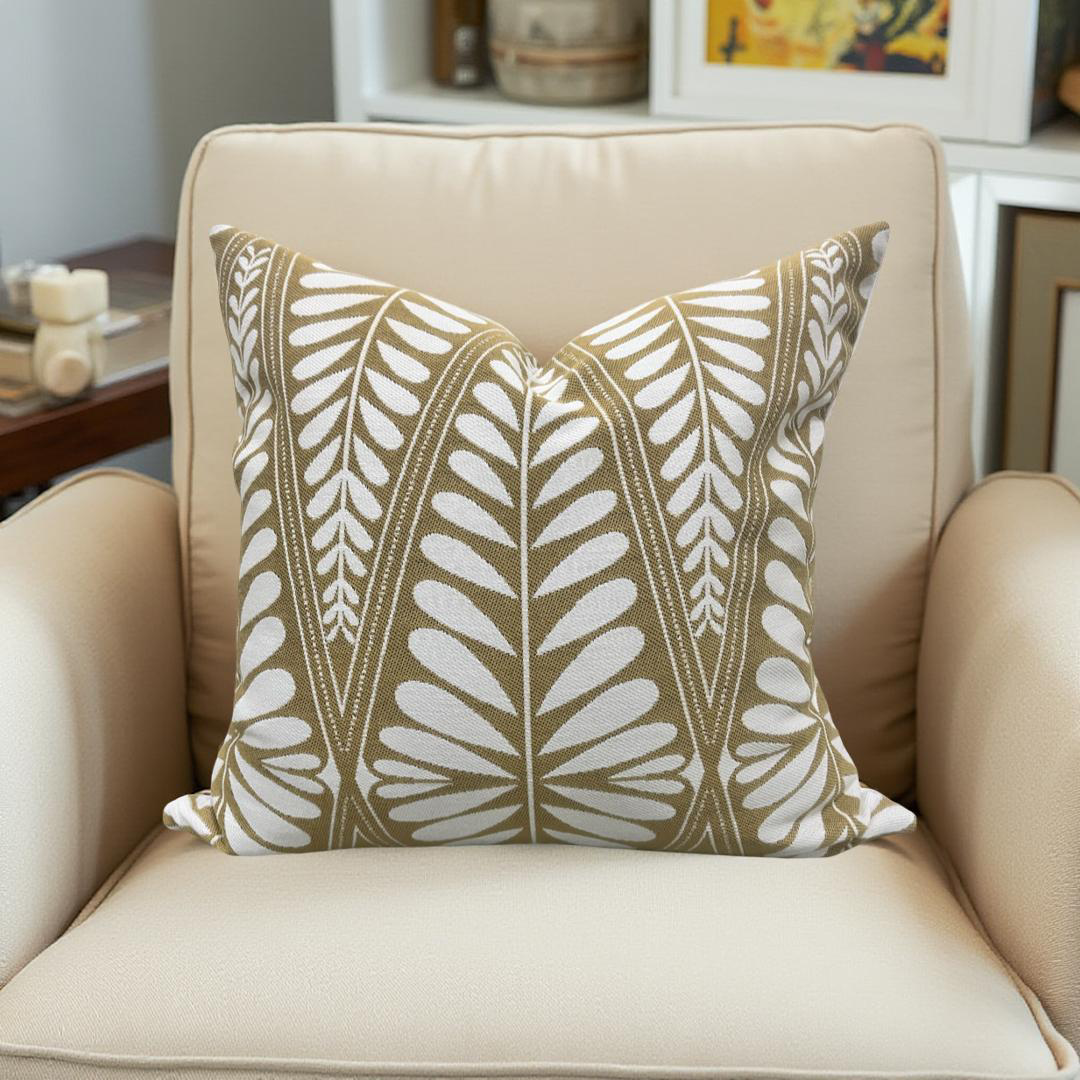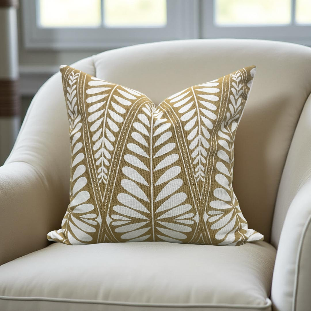 Designer Fabric Moi Marche Out Gold 18x18" Knife Edge Decorative Throw Pillow