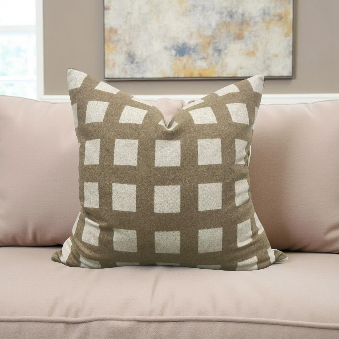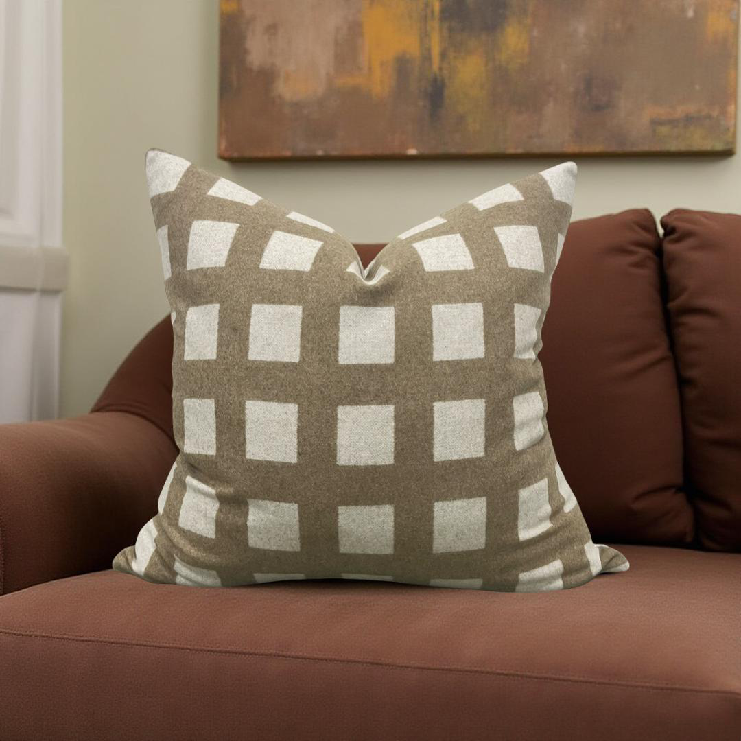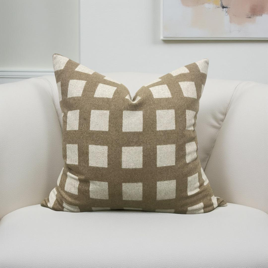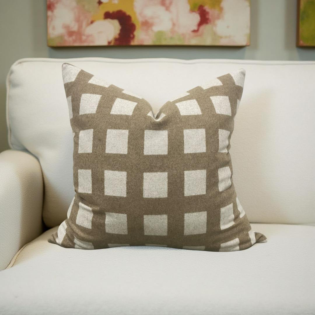 This stunning pillow features a beautifully felted textile originating from Italy, and is reversible for added versatility in your design scheme. The fabric's geometric design boasts structured simplicity, creating a refreshing aesthetic. Made with a blend of 80% wool and 20% nylon, this pillow offers a super soft hand-feel and a luxurious density, weighing 14.19 oz.