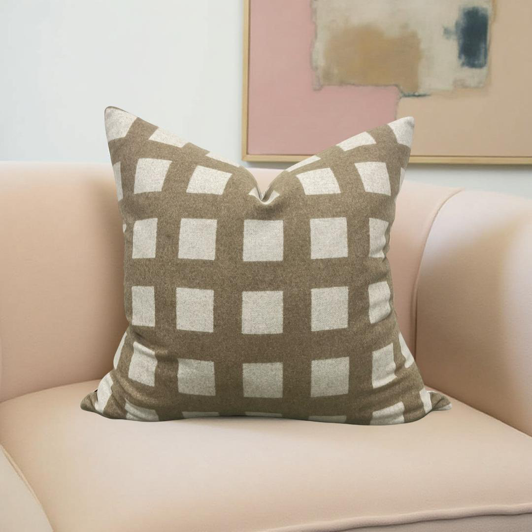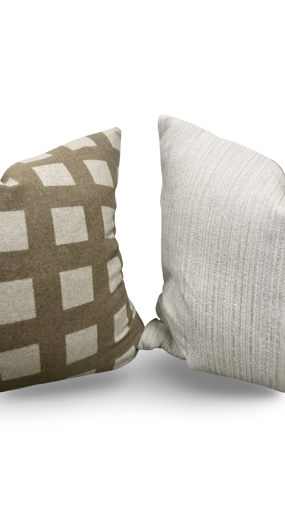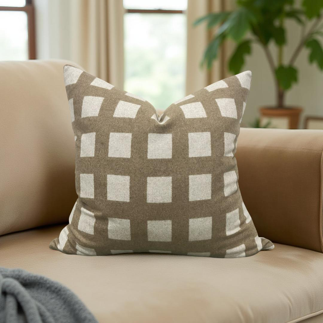 This stunning pillow features a beautifully felted textile originating from Italy, and is reversible for added versatility in your design scheme. The fabric's geometric design boasts structured simplicity, creating a refreshing aesthetic. Made with a blend of 80% wool and 20% nylon, this pillow offers a super soft hand-feel and a luxurious density, weighing 14.19 oz.