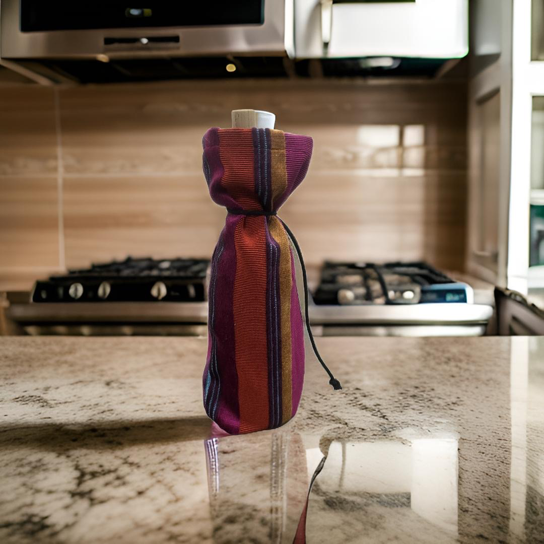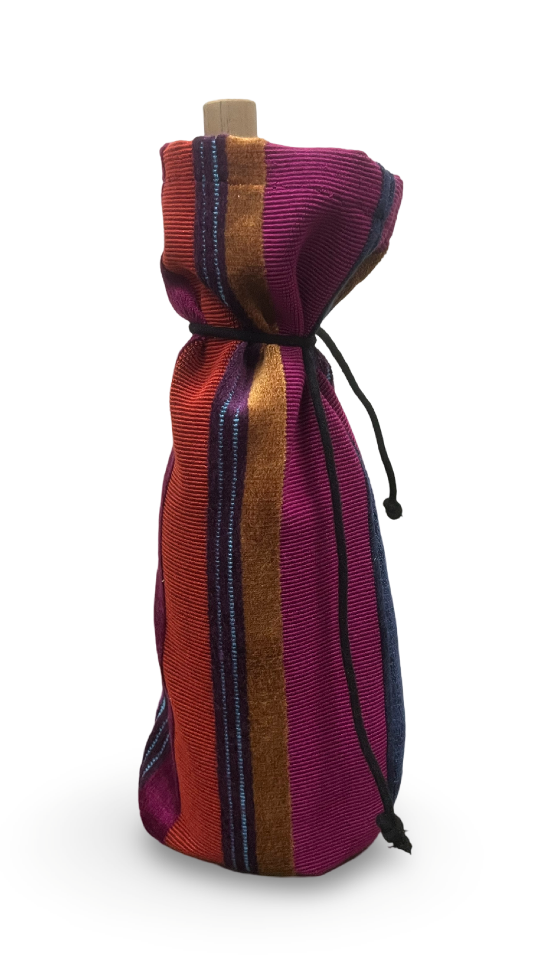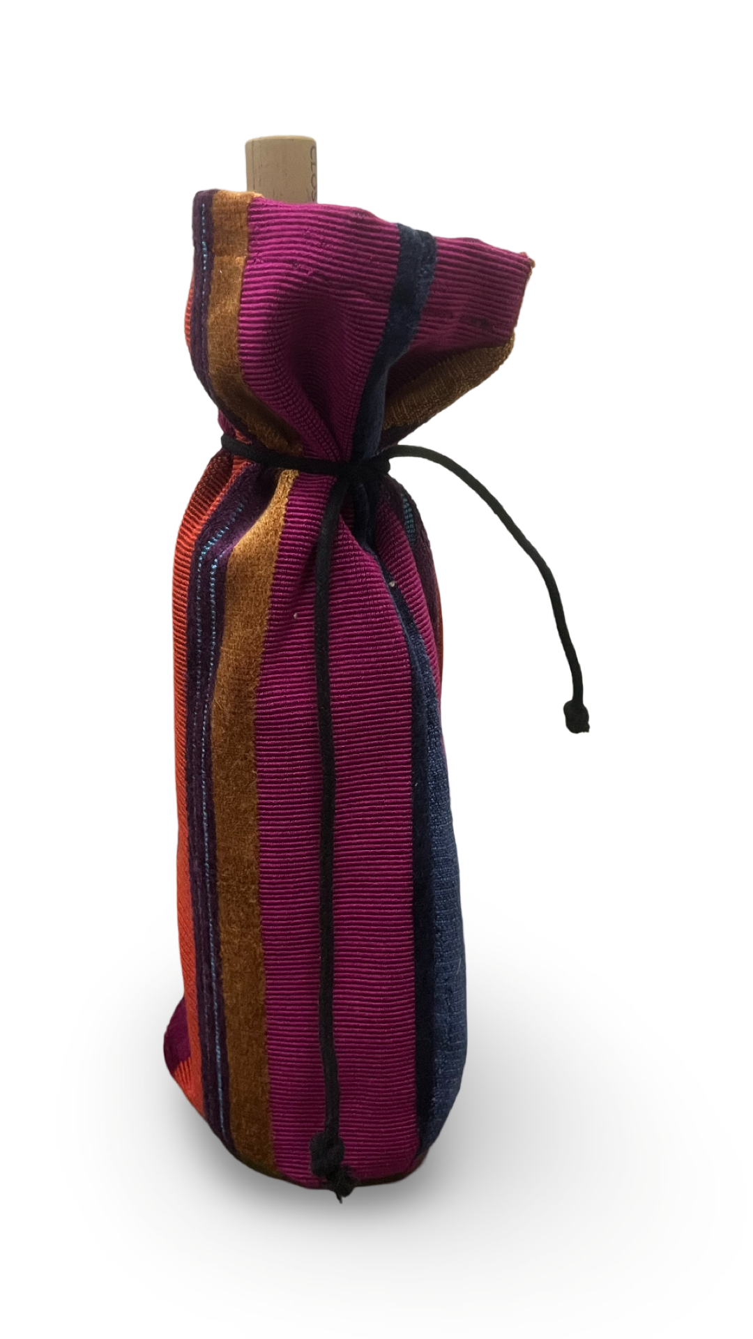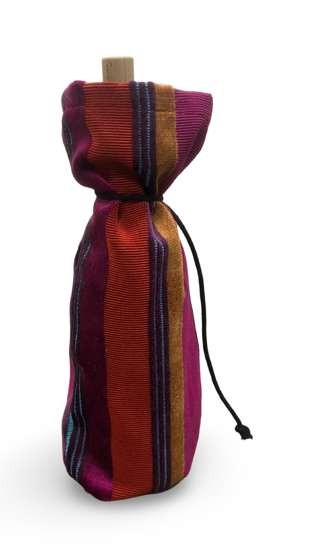 Fuchsia and Multi Colored Velvet Wine Bottle Bag