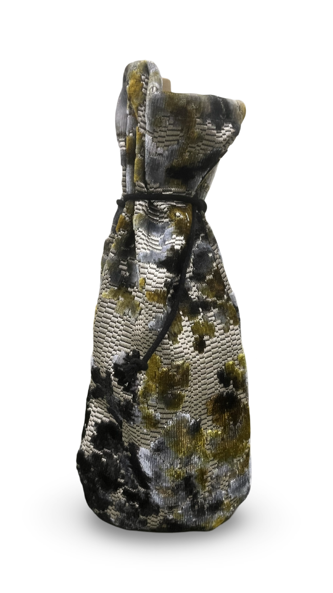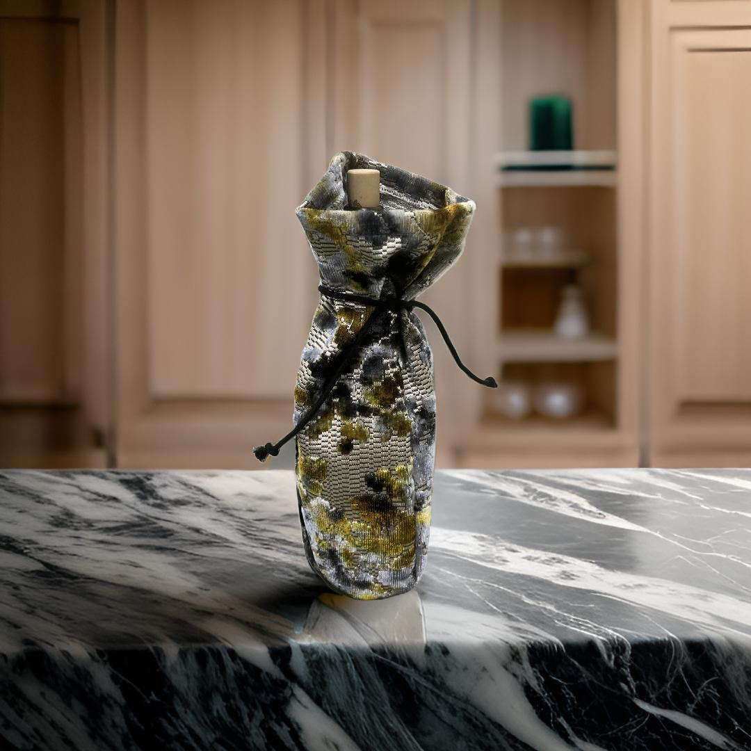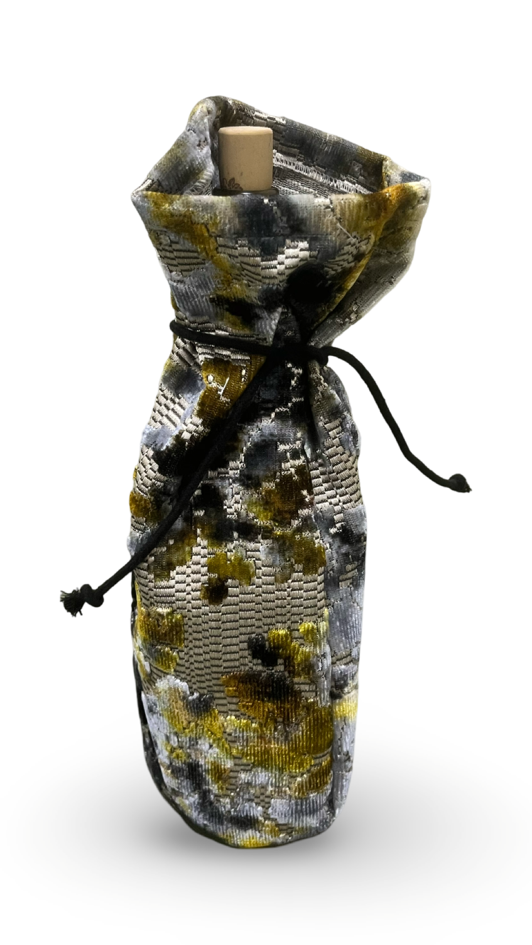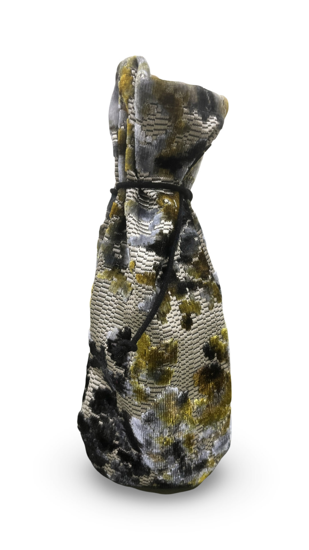 Grey, Gold, and Black Velvet Wine Bottle Bag
