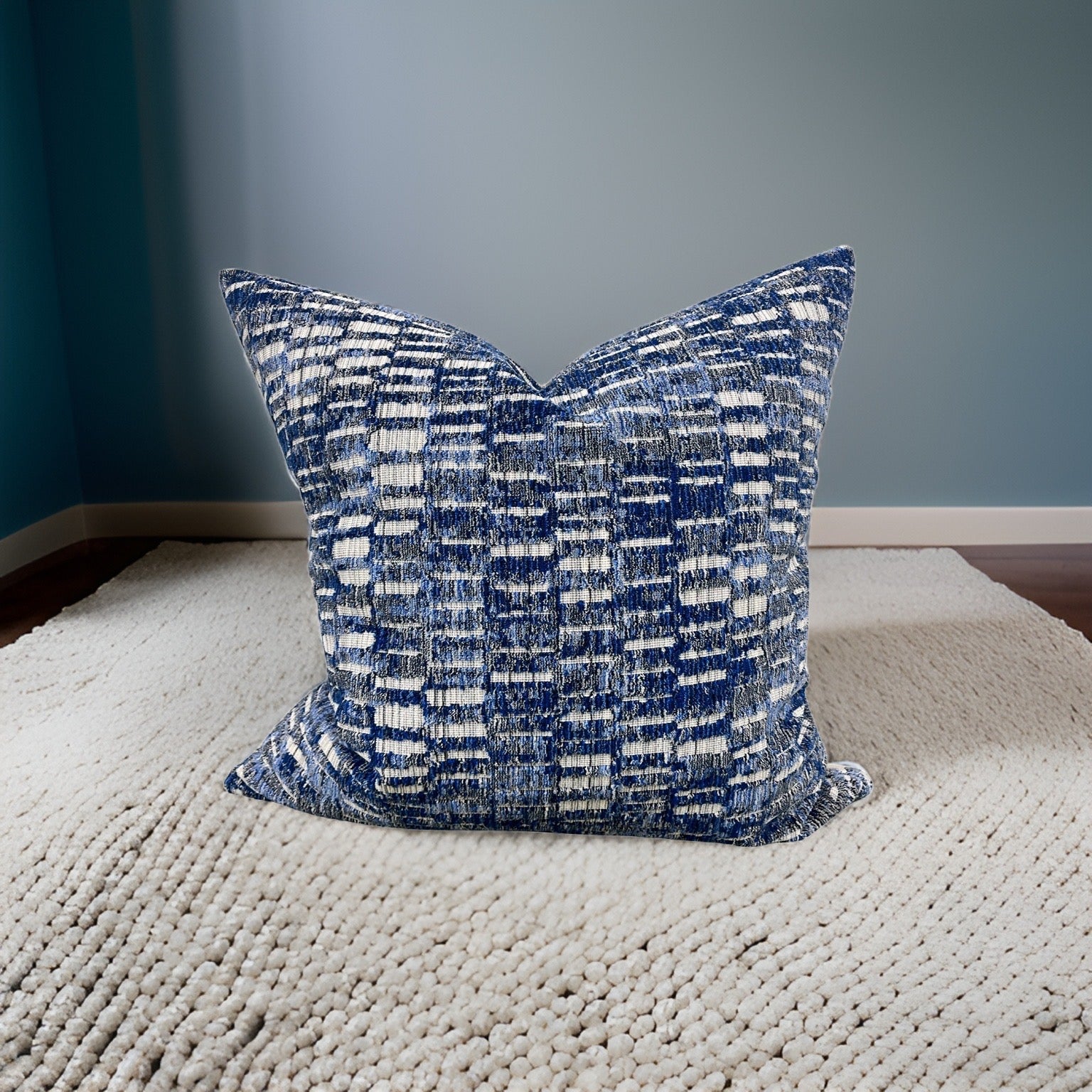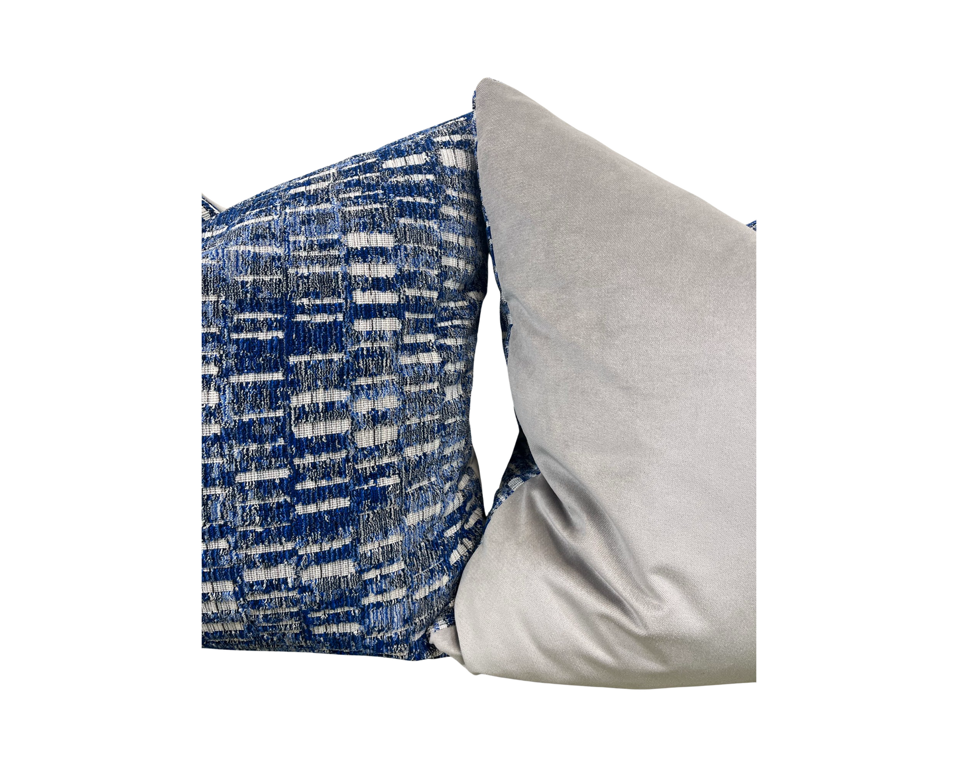 This luxurious pillow adds a touch of elegance and sophistication to any room. The rich blue and grey tones complement each other beautifully, while the textured velvet fabric adds a tactile element to the design. The fabric used on the back is a rich velvet that matches perfectly to the grey tone in the Switchback pattern. Measuring 22 inches, this decorative pillow is the perfect size for adding a pop of color and style to your sofa, bed, or favorite armchair. Whether you're looking to refresh your living space or simply add a cozy accent to your decor, this pillow is sure to impress.