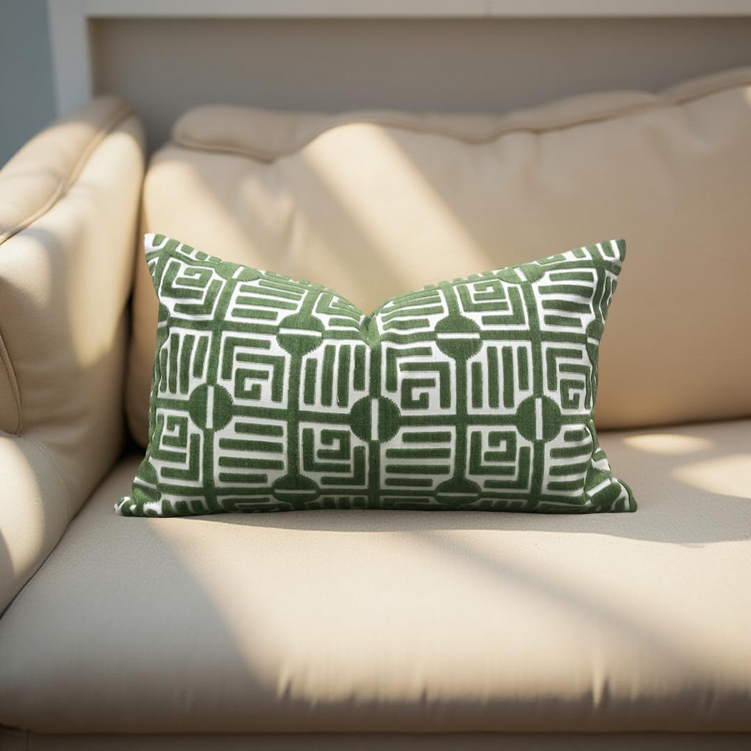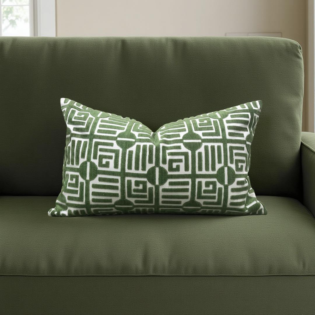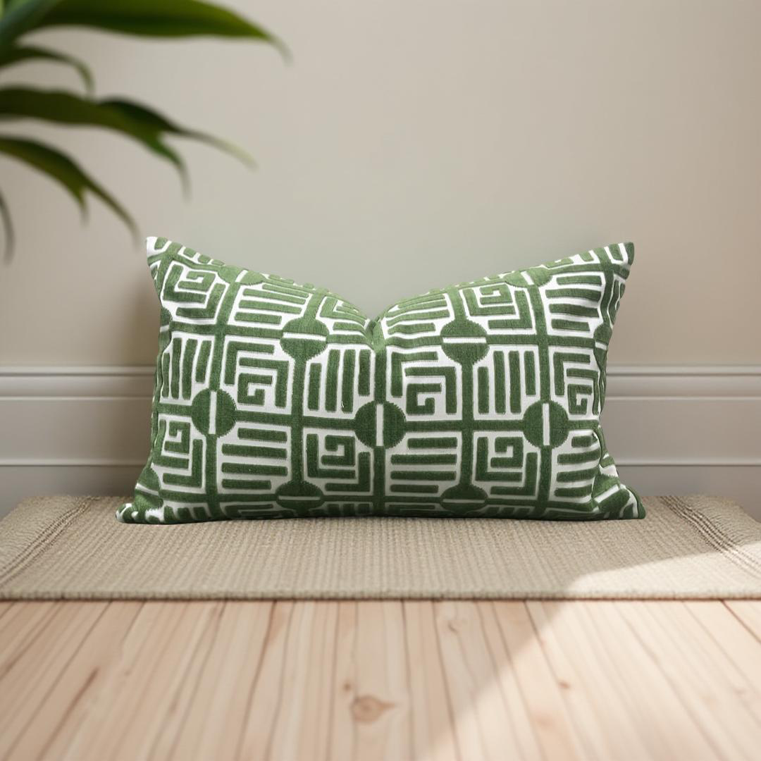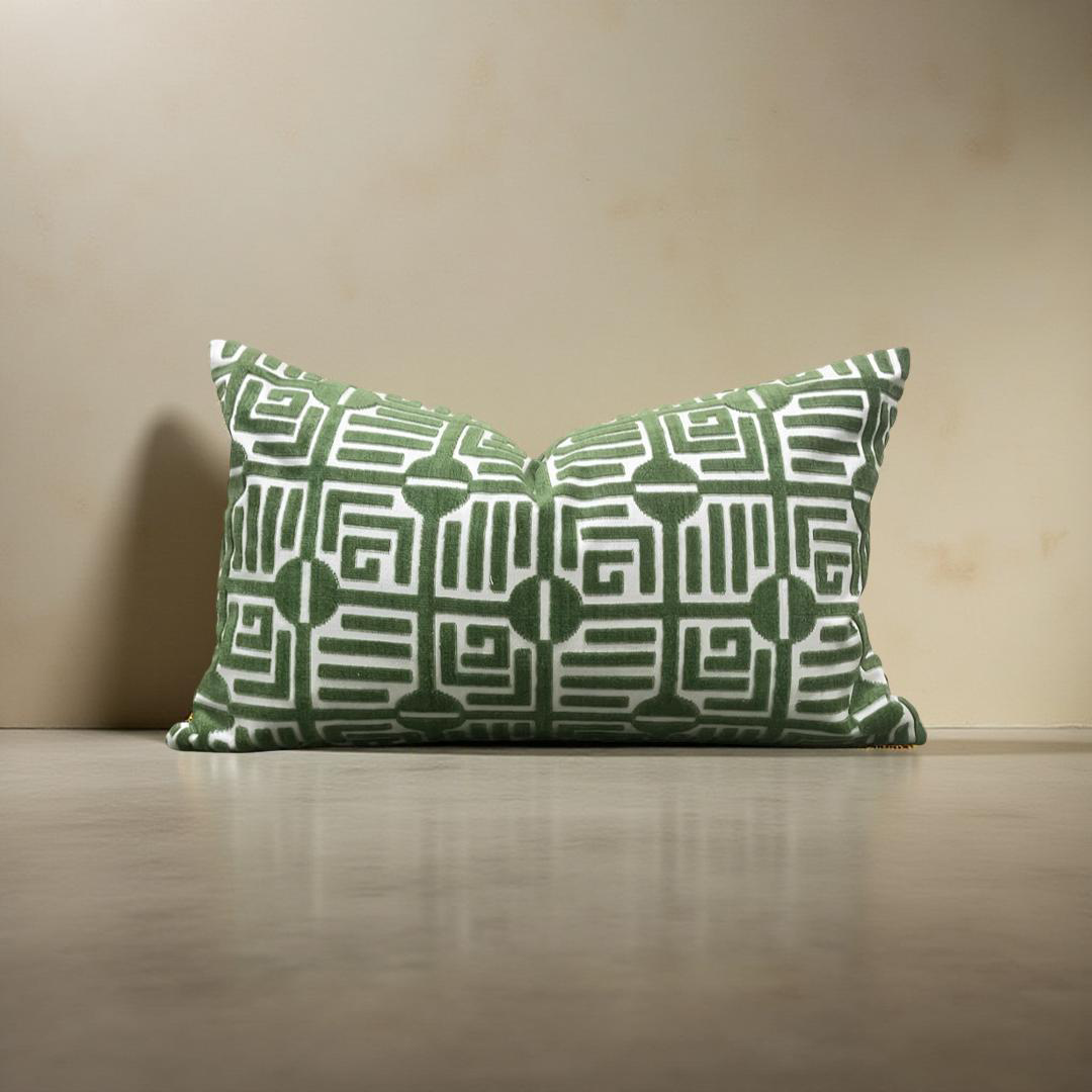 Designer Fabric Labyrinth Velvet Emerald 12X18" Knife Edge Decorative Lumbar Pillow