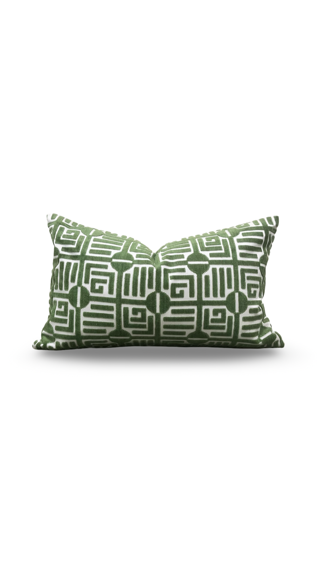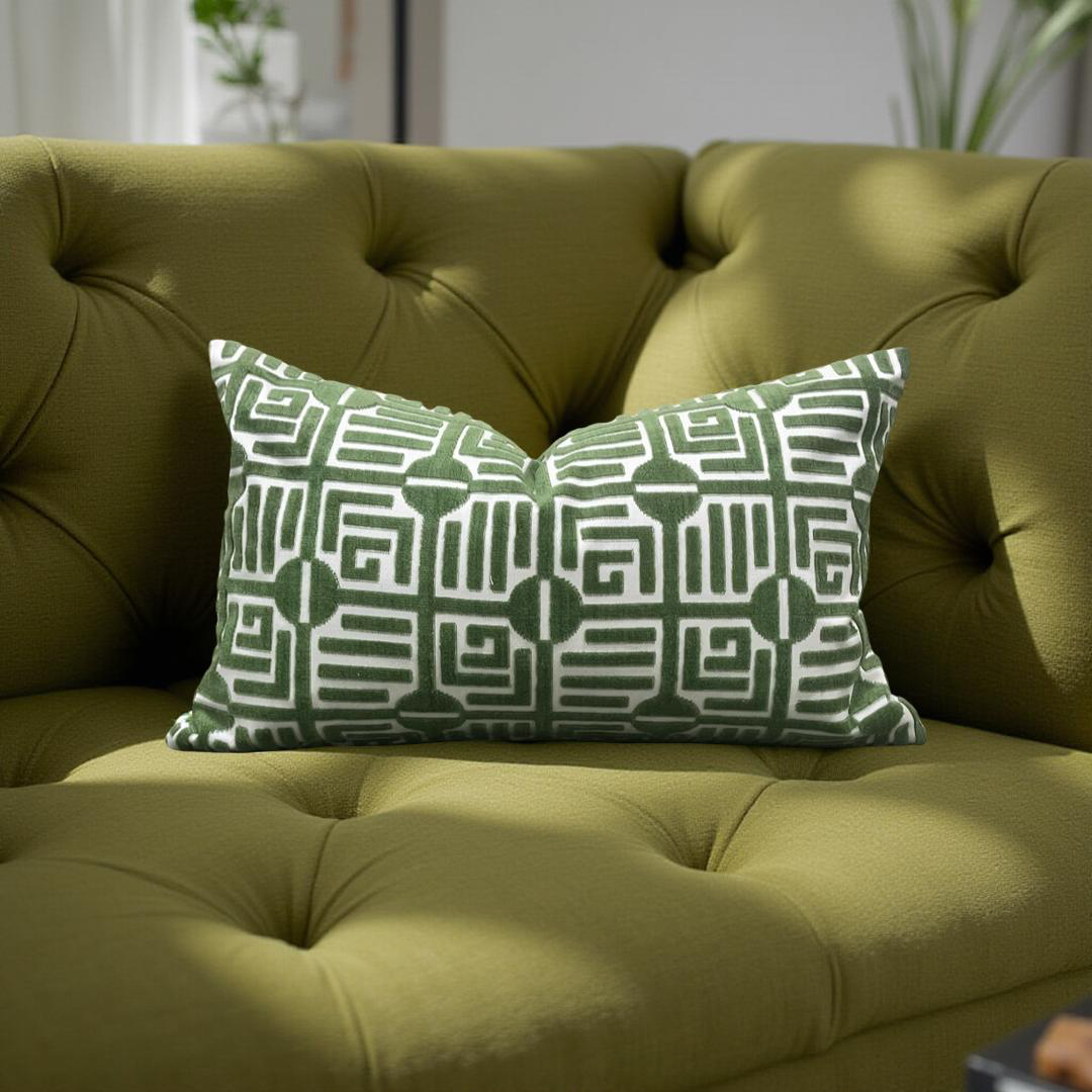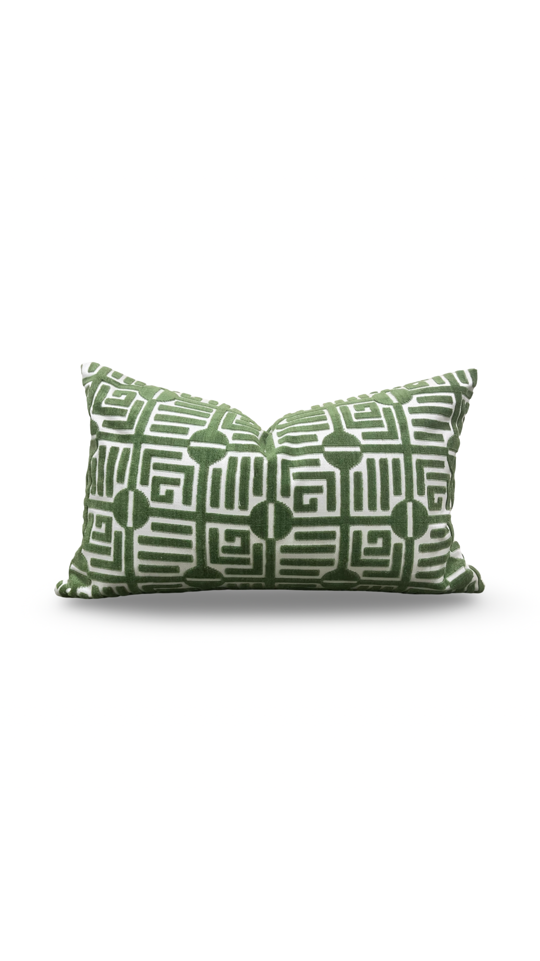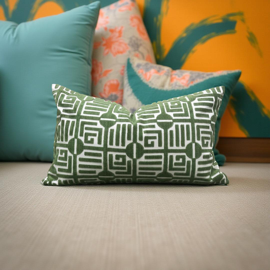 Designer Fabric Labyrinth Velvet Emerald 12X18" Knife Edge Decorative Lumbar Pillow