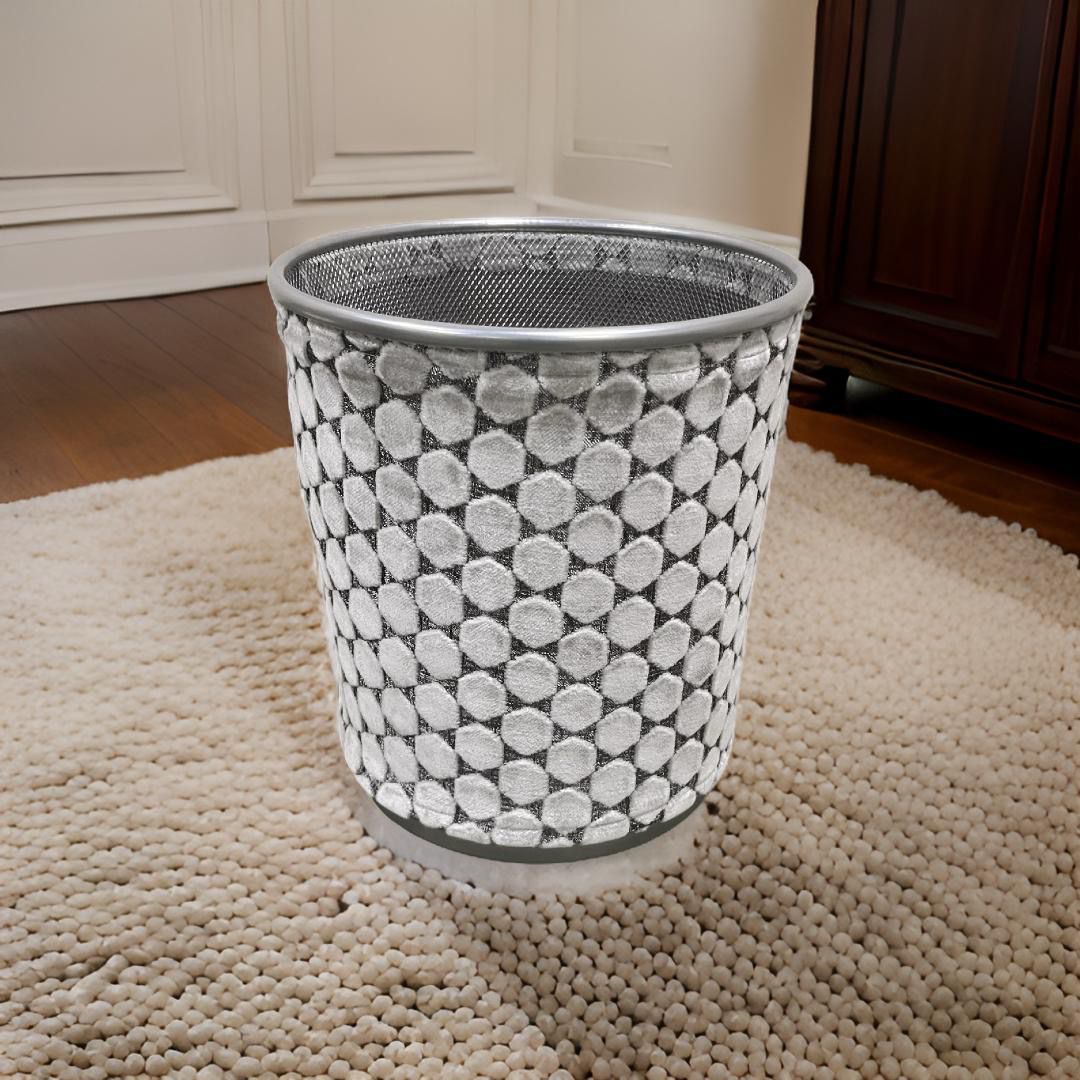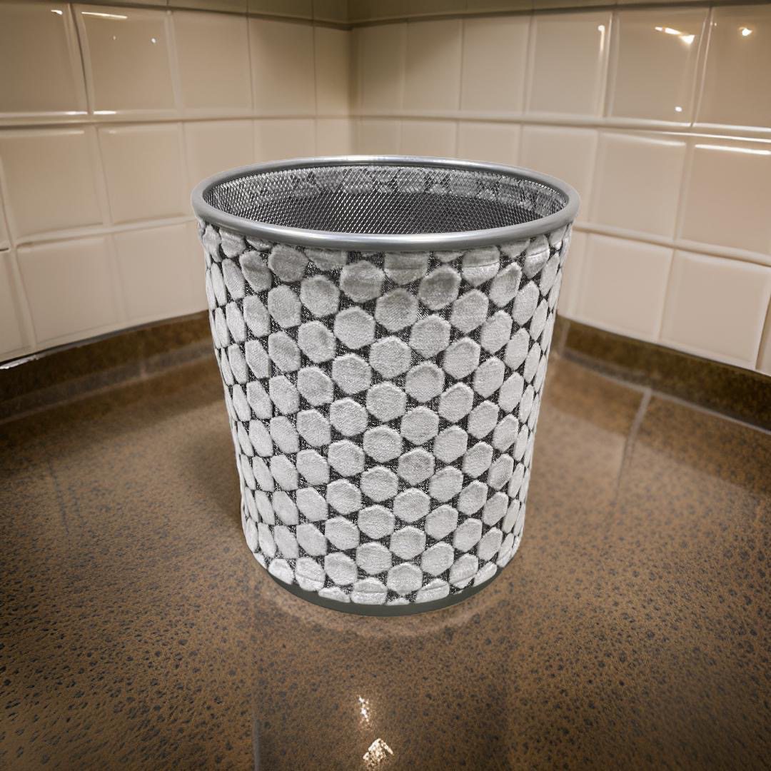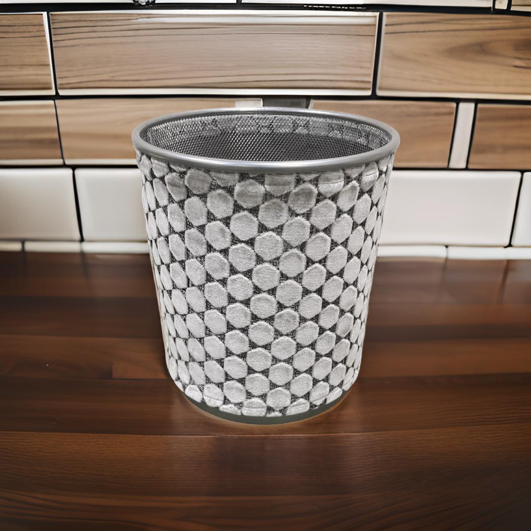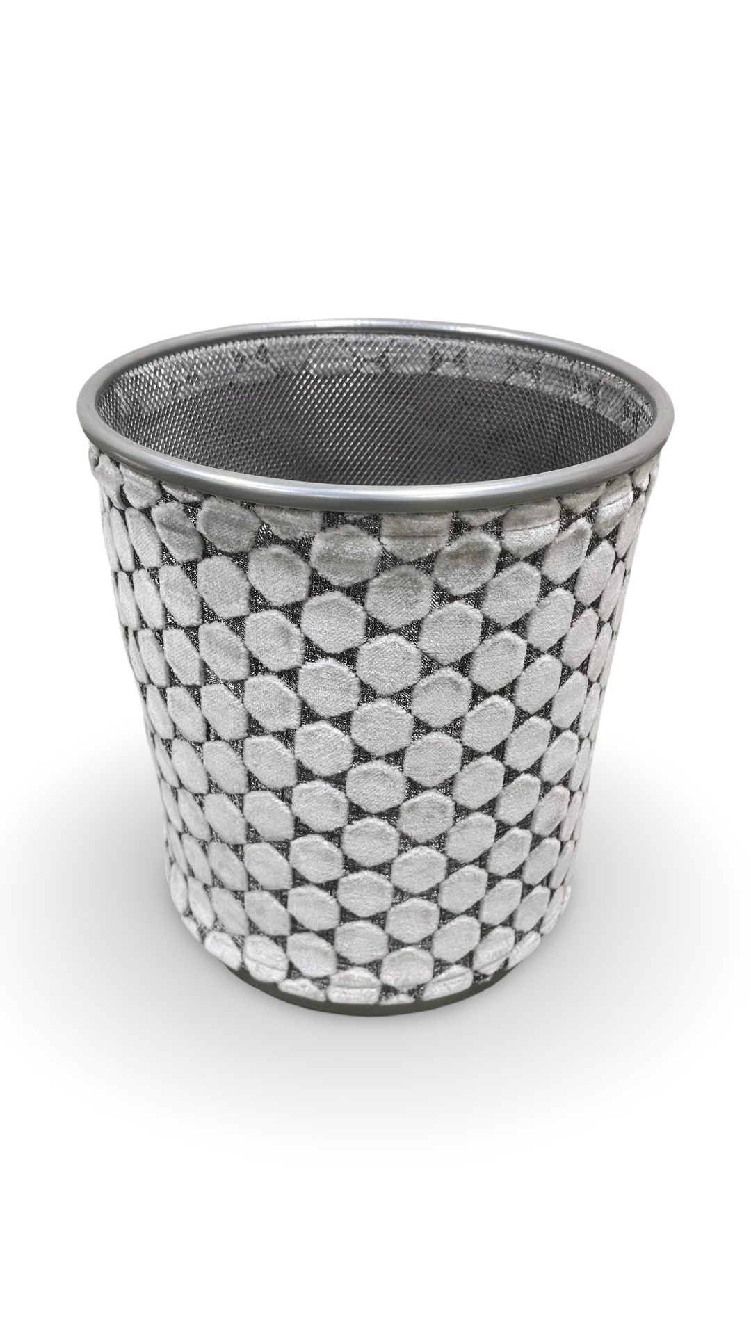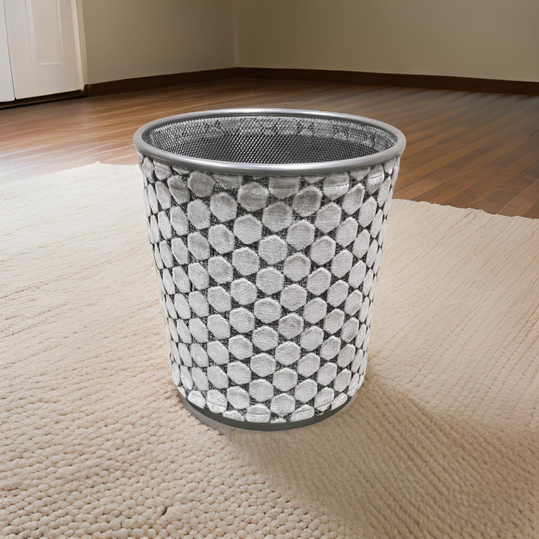 Light Grey Velvet Polka Dot Pattern Decorative Waste Basket