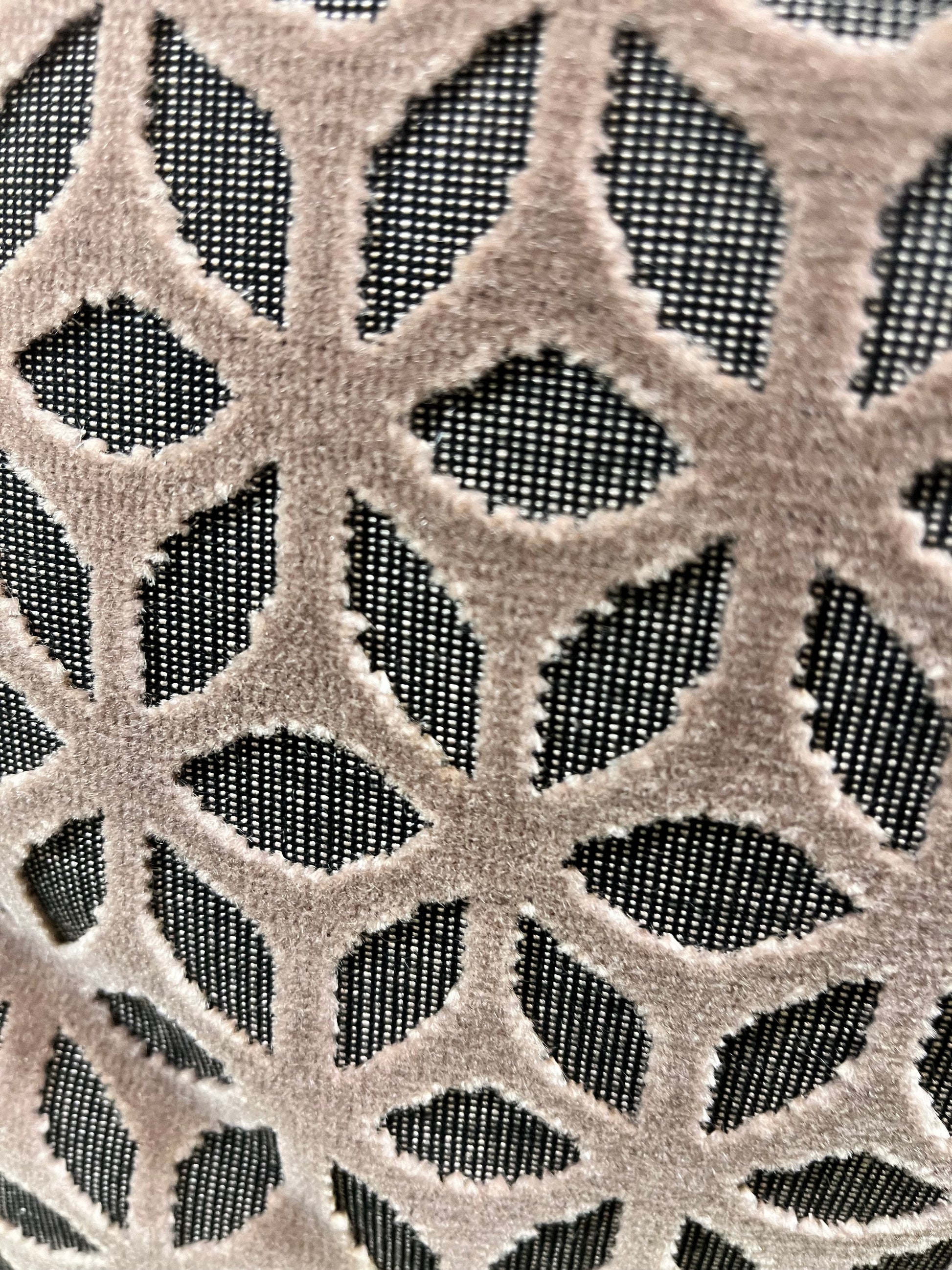 Elevate your living space with the luxurious Merletto - Oyster 22x22" decorative pillow, featuring a raised velvet design. This beautiful soft neutral hue color is from the Palladio collection at Panaz, which displays a lace-like raised velvet design.
