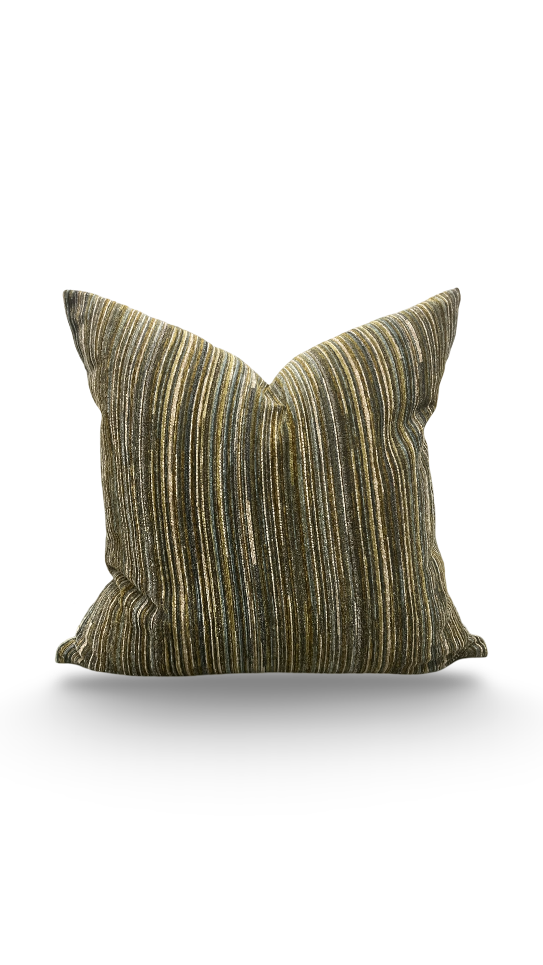 Multi Neutral Vertical Striped Textured Velvet 20X20" Knife Edge Decorative Pillow
