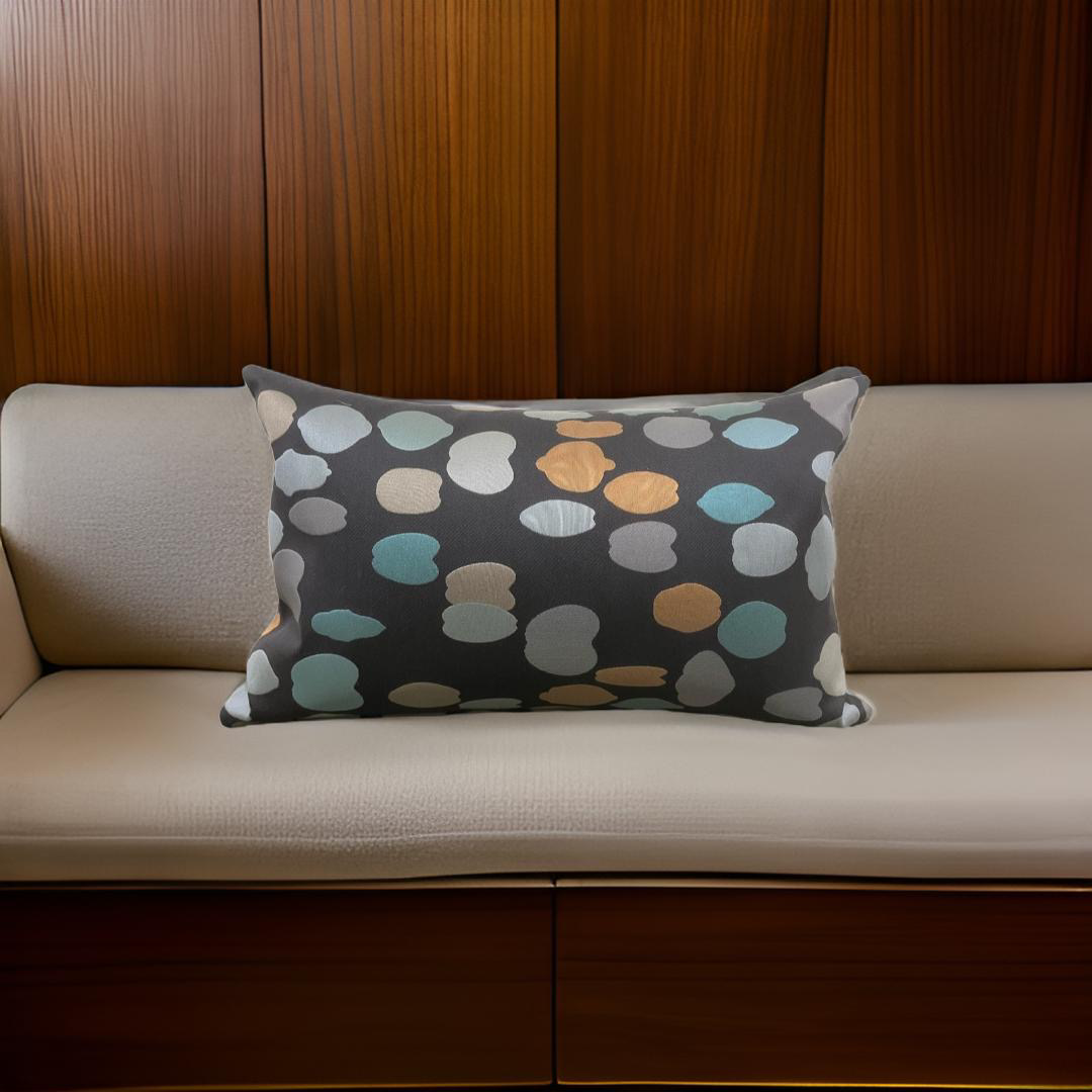 Multicolor Dots on Charcoal 12X18" Knife Edge Decorative Lumbar Pillow