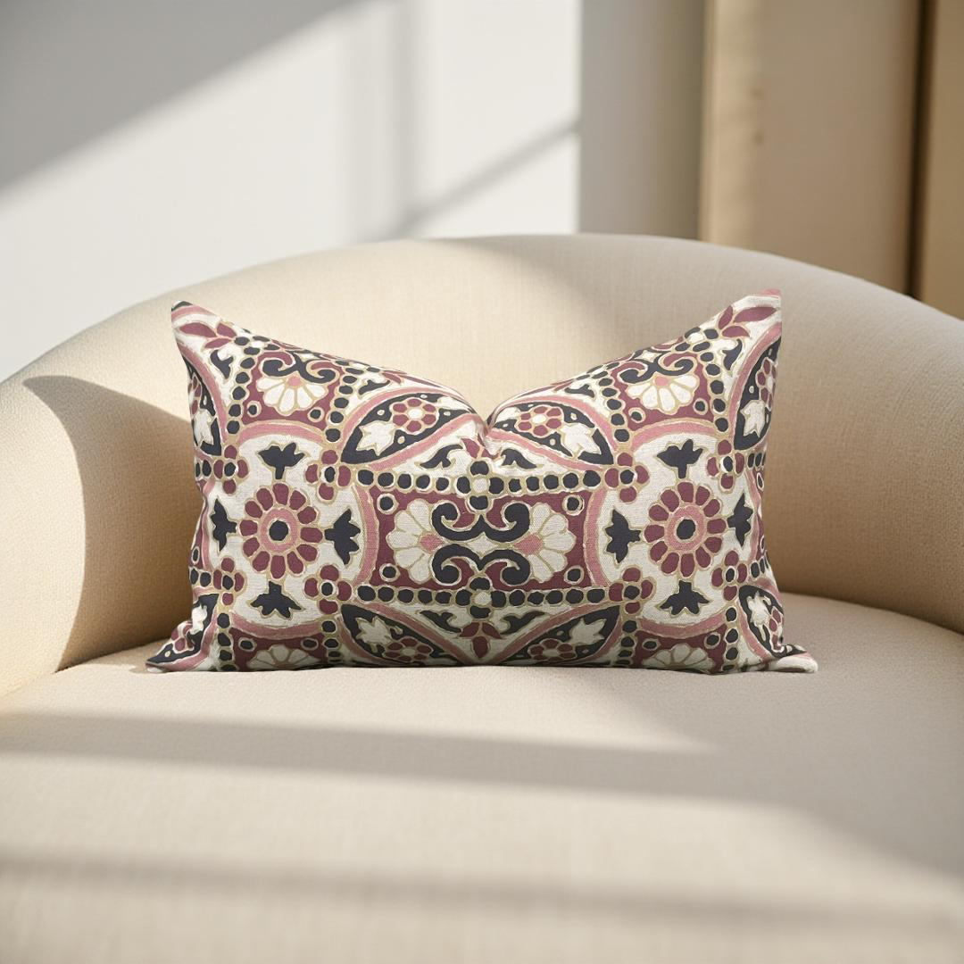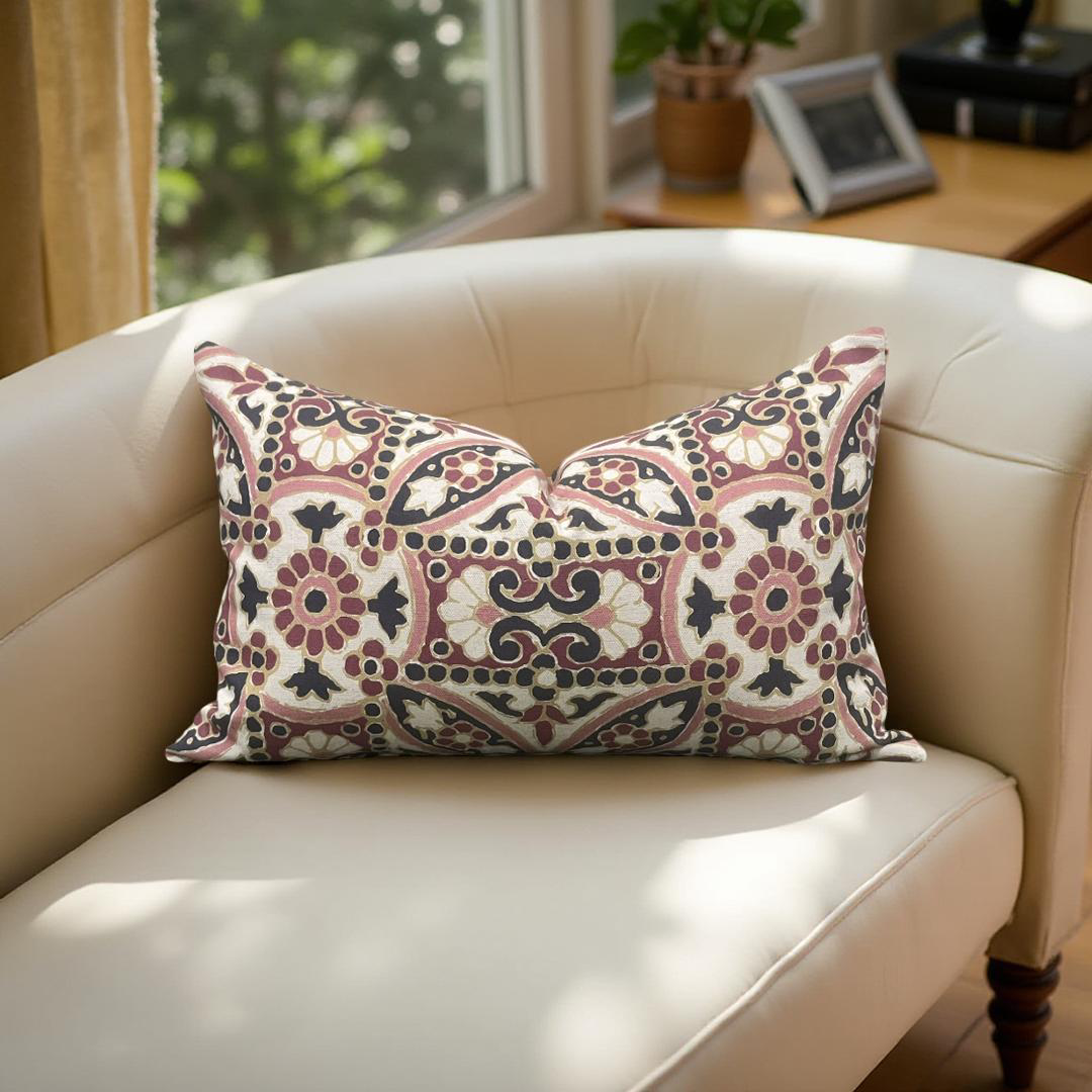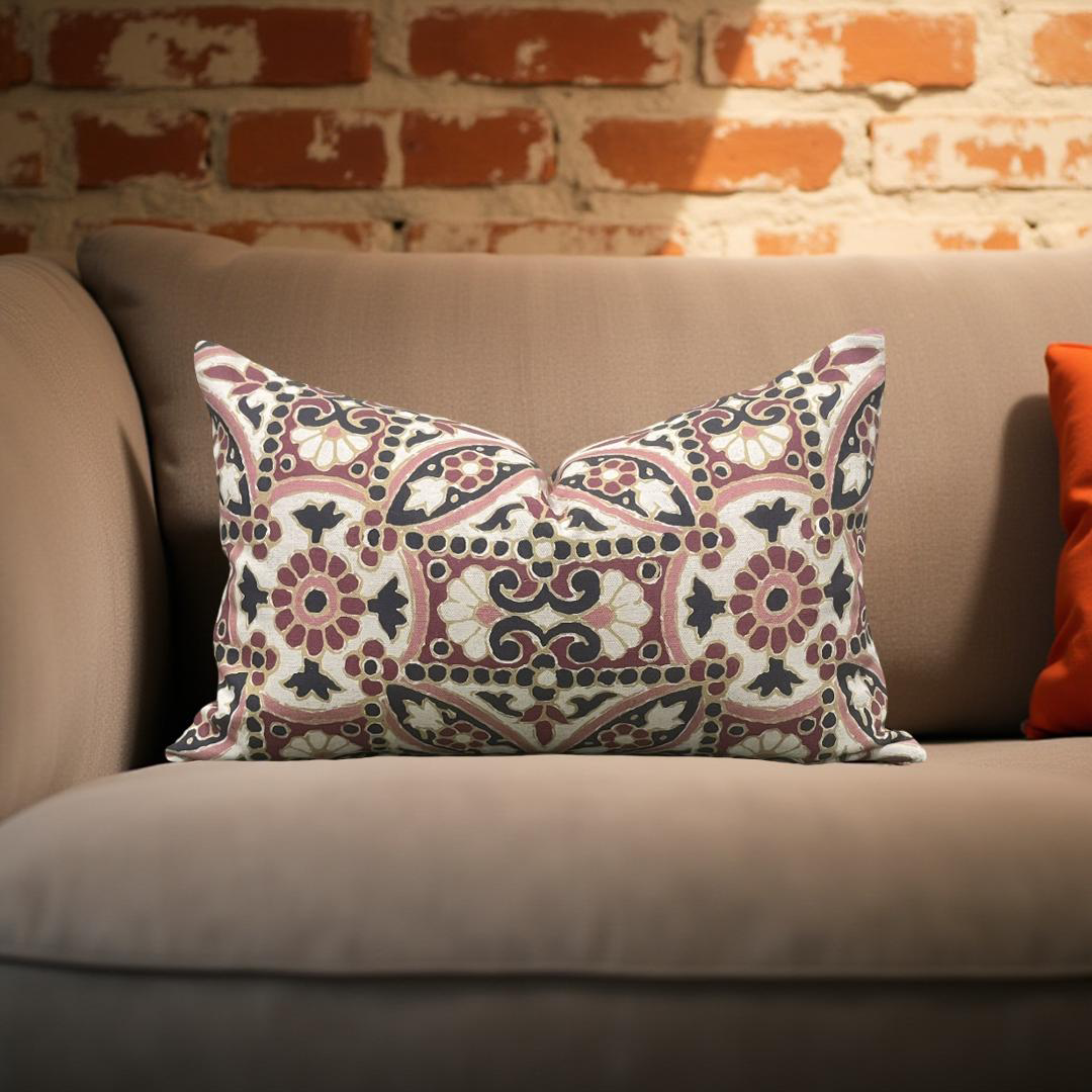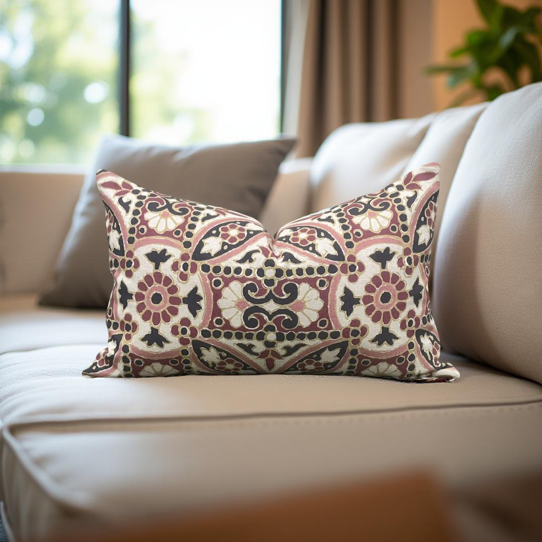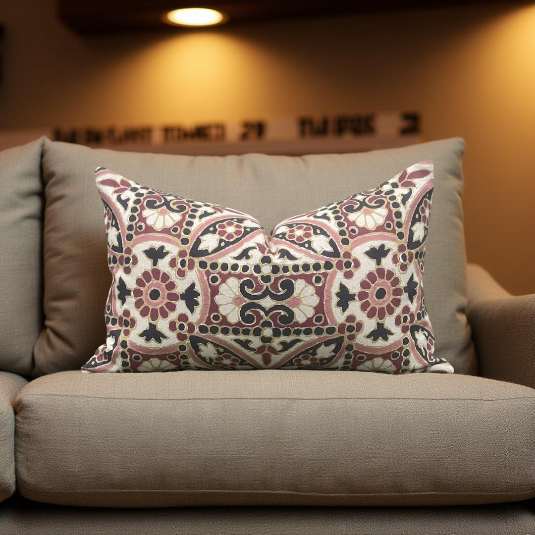 Designer Fabric Oman Berry 12x18" Knife Edge Decorative Lumbar Pillow