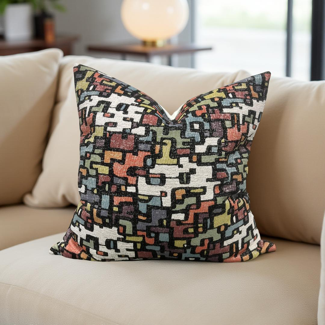 Designer Fabric Puzzle Gumdrop 18x18" Knife Edge Decorative Throw Pillow