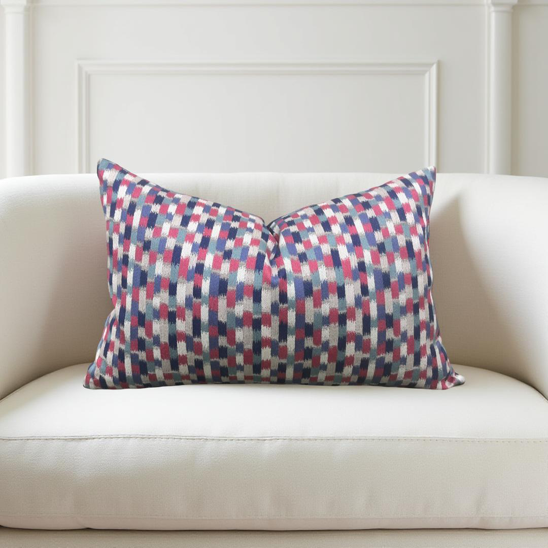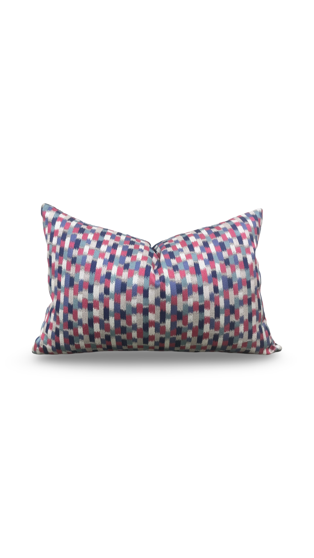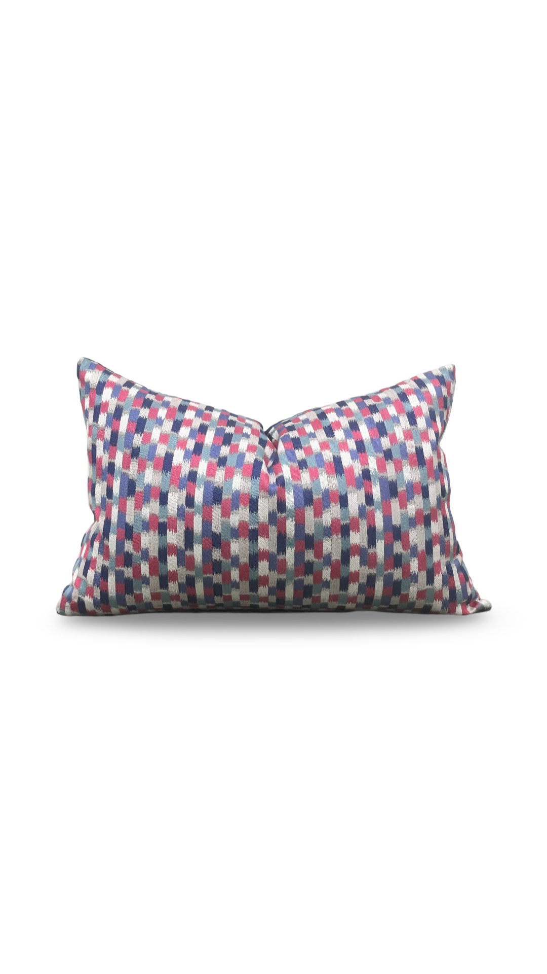 Pink Blue and Silver 12X18" Knife Edge Decorative Lumbar Pillow