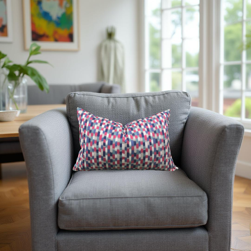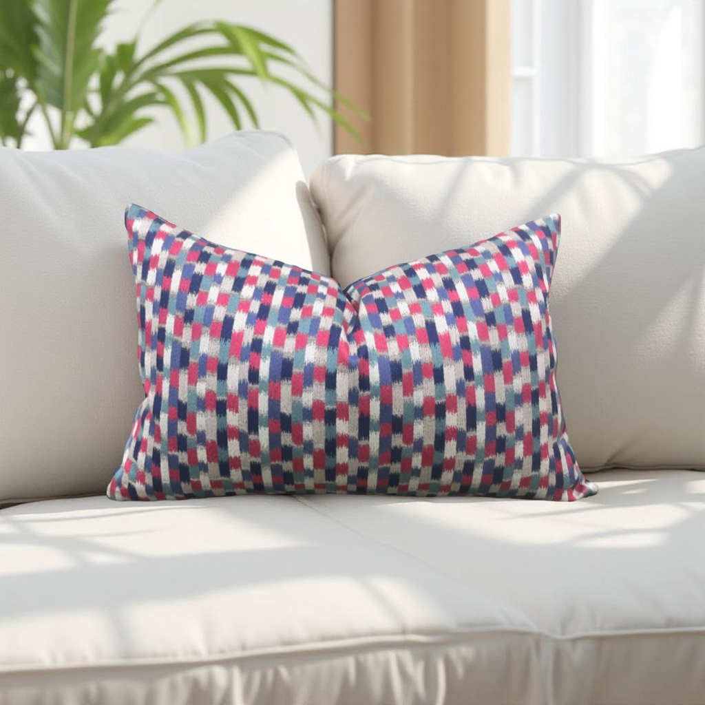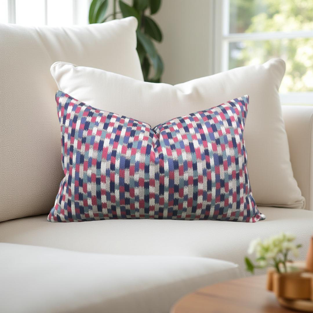Pink Blue and Silver 12X18" Knife Edge Decorative Lumbar Pillow