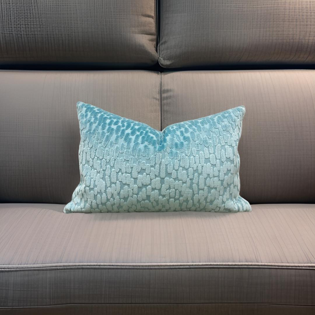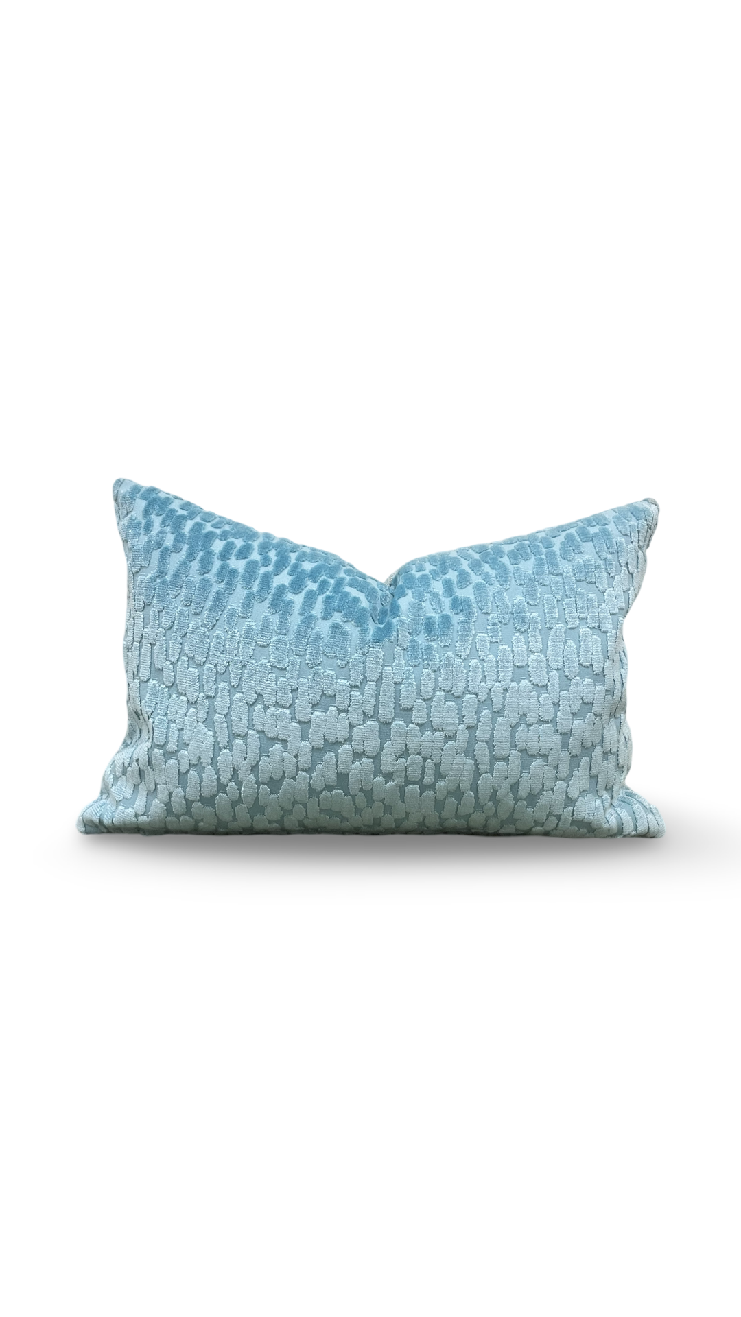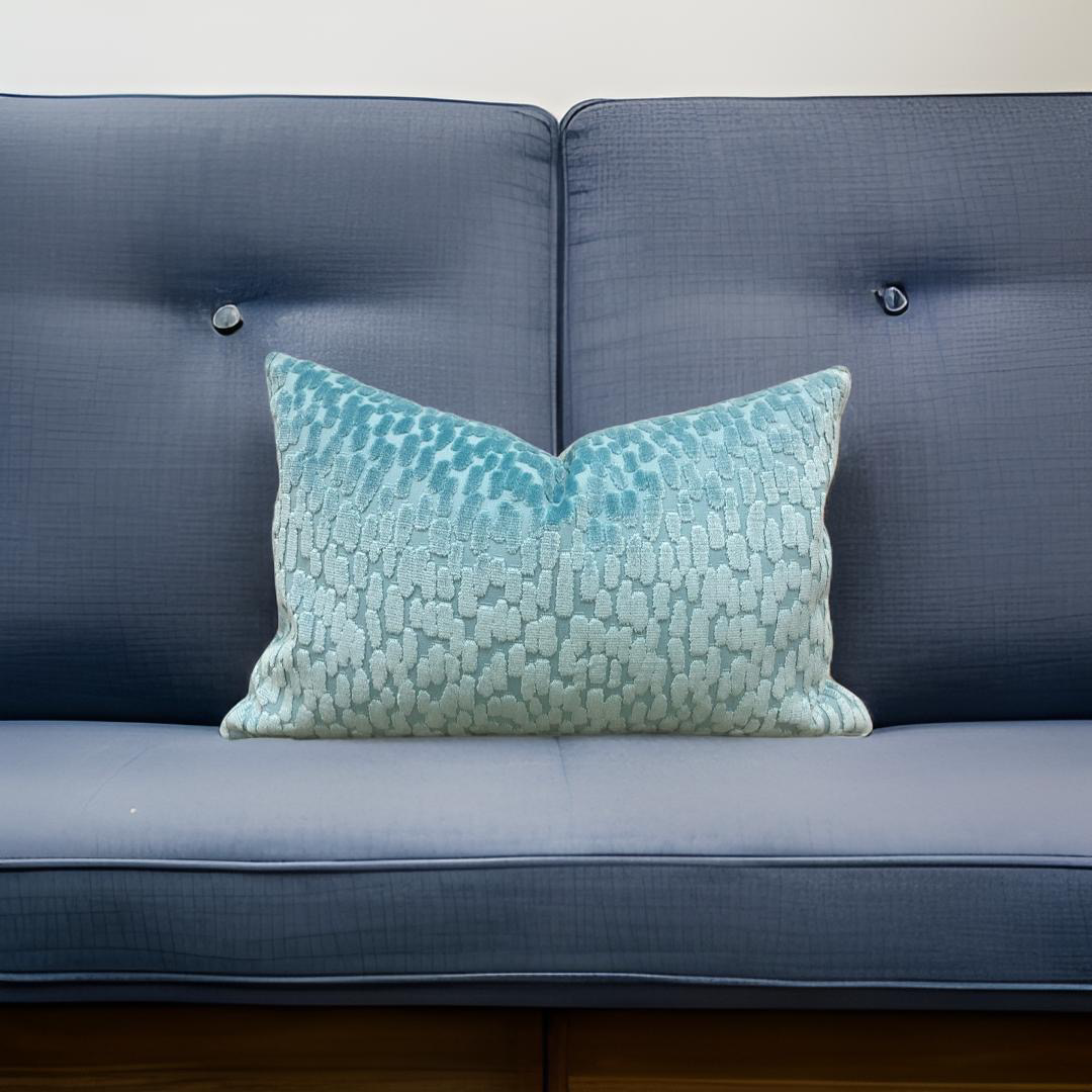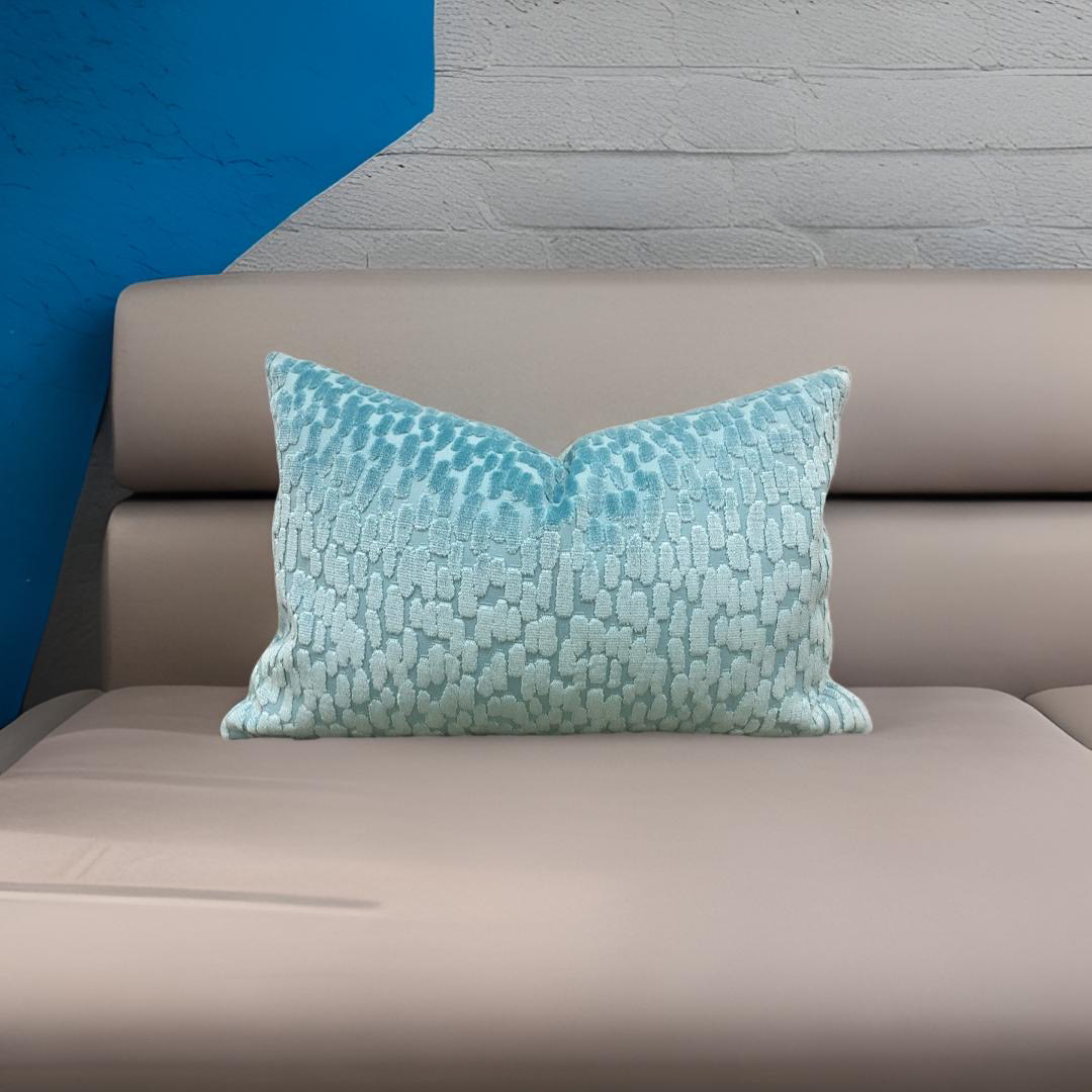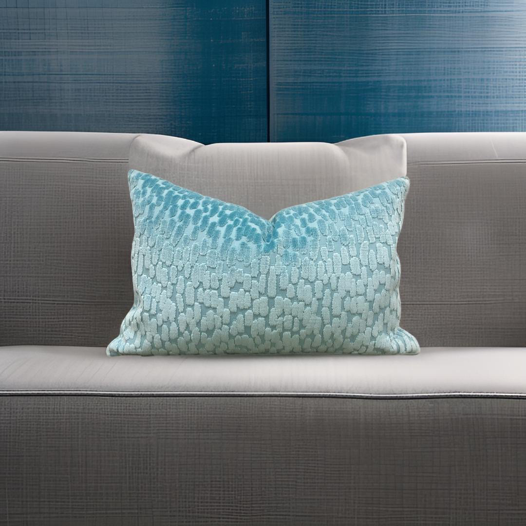 Sky Blue Raised Velvet Rain Drops 12X18" Knife Edge Decorative Lumbar Pillow
