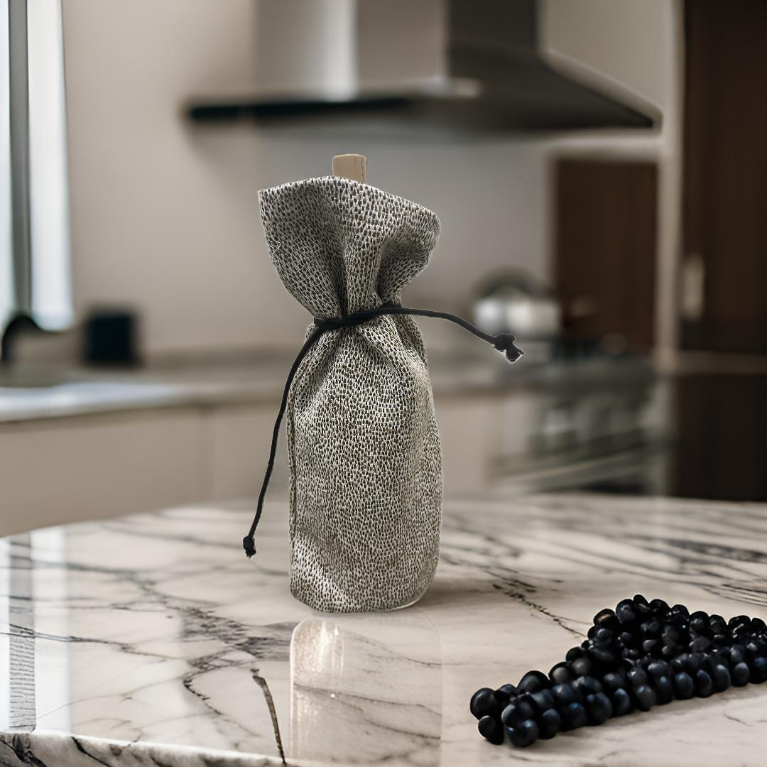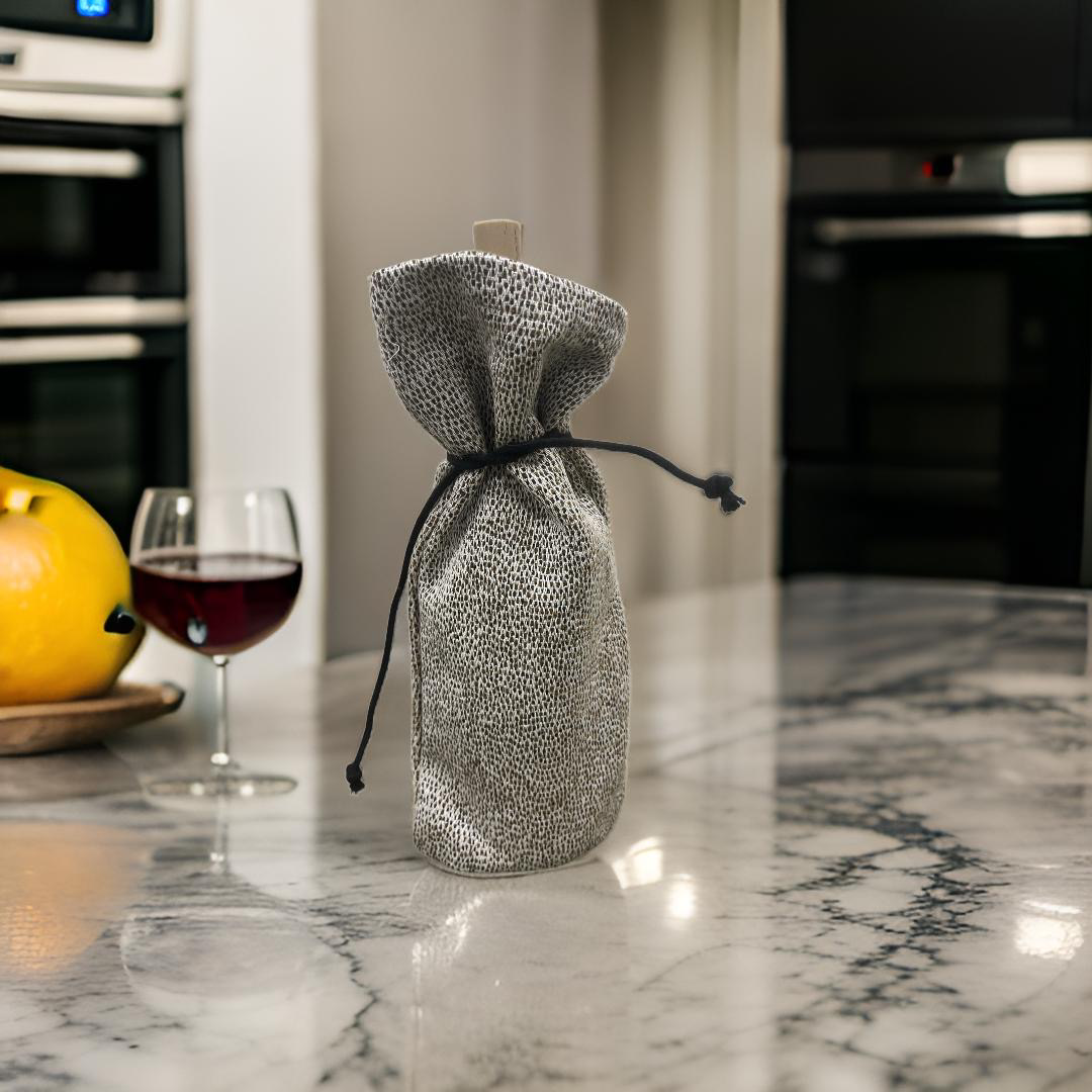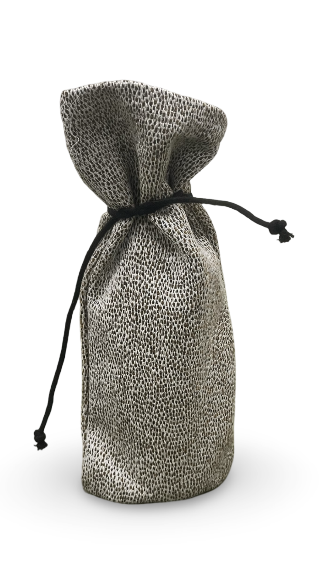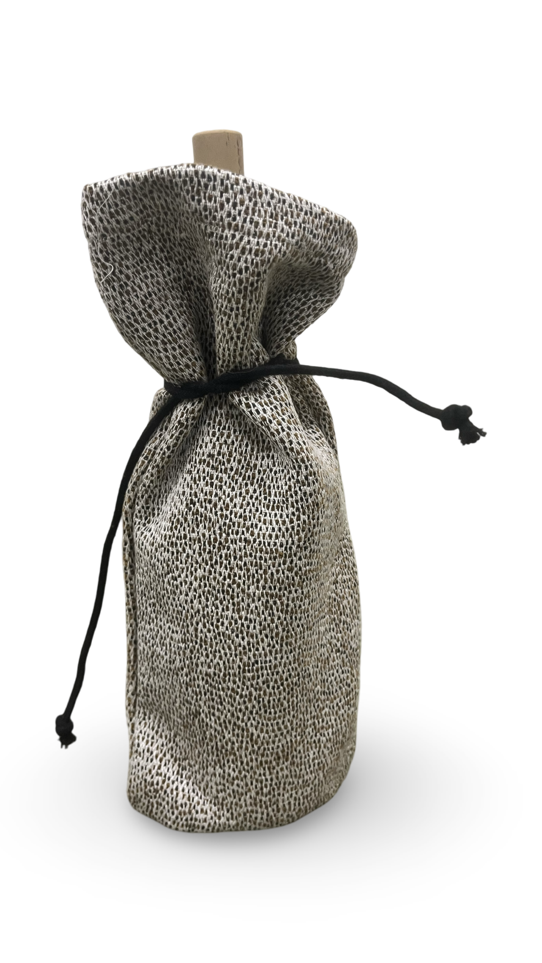Our gift bags are great for any occasion. They are, especially, great for gifting a bottle of wine. They could also be used for many other small gifts too (see dimensions). These bags can be gifted and re-gifted, time and time again. Our fabric gift bags are handmade in Kentwood, Michigan. They are made with a durable Charcoal/black velvet fabric and have a 3 mm black tie cord which is approximately 3" down from the top of the bag, which ties perfectly around the neck of a wine bottle. Each bag measures 14 3/4" (h) x 6" (w).